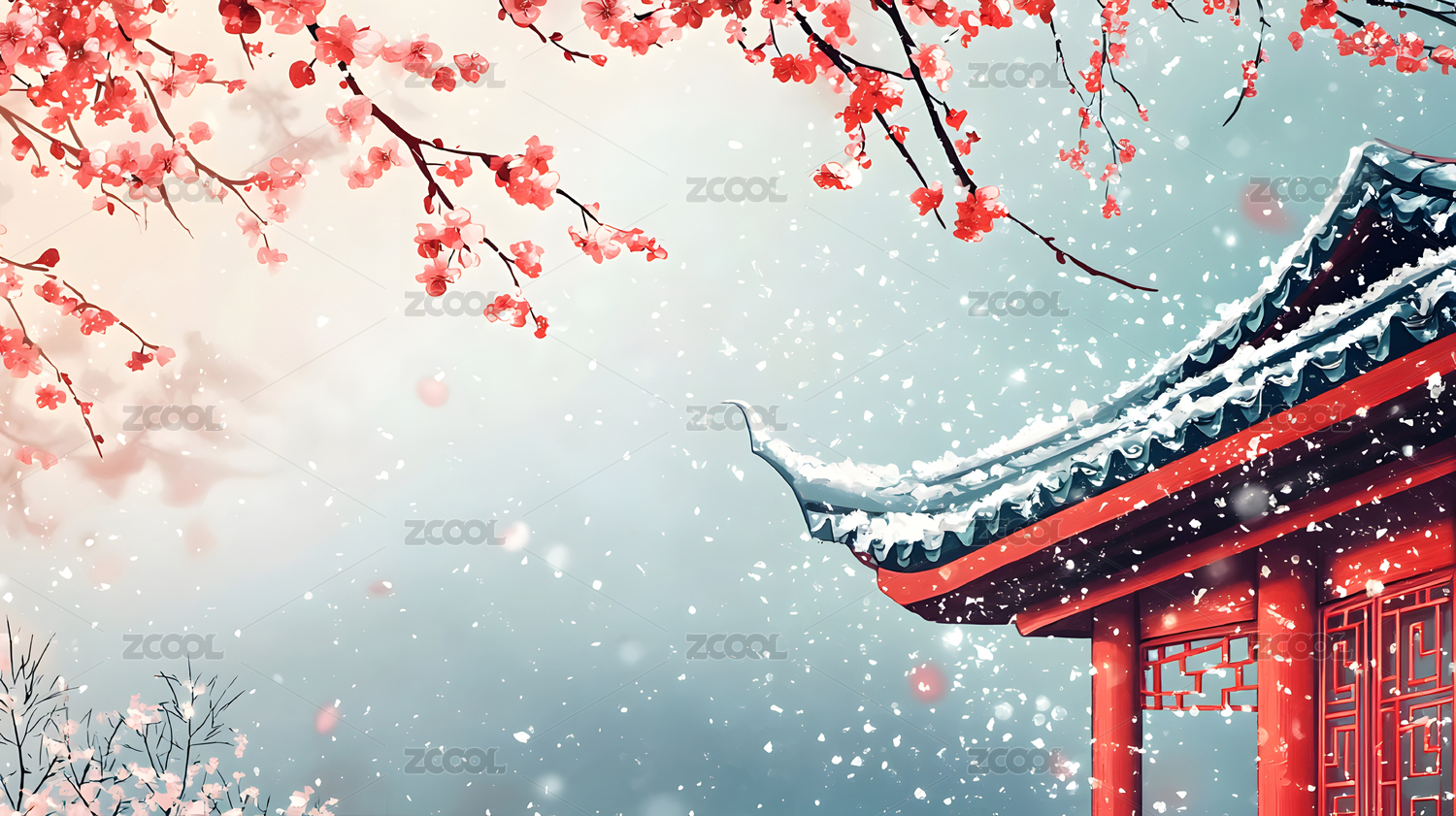 雪景,节日,灯笼,冬季,传统,红色,宁静,树枝,风景,自然