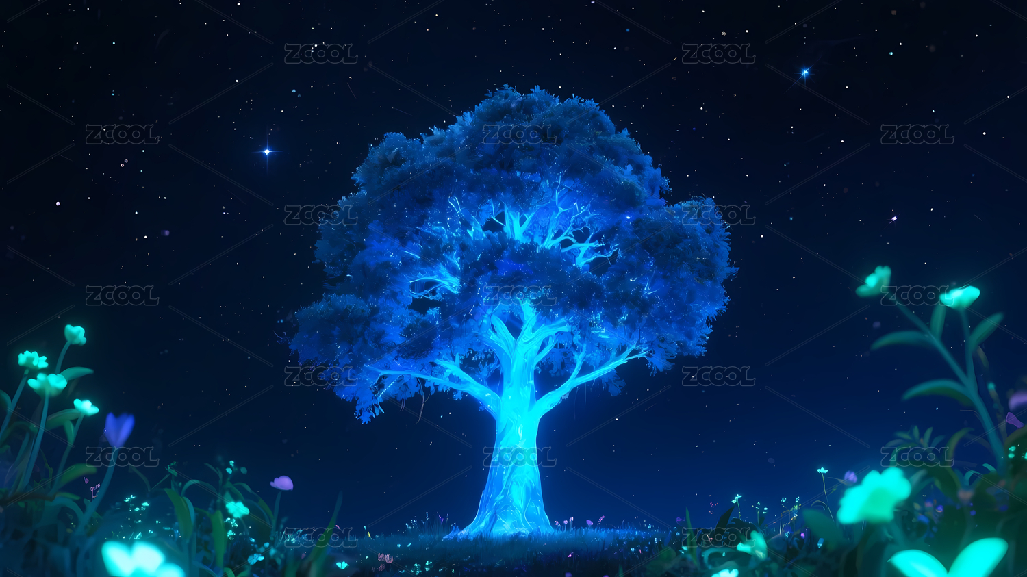 星空,树,夜晚,发光,梦幻,宁静,唯美,景观,自然,希望