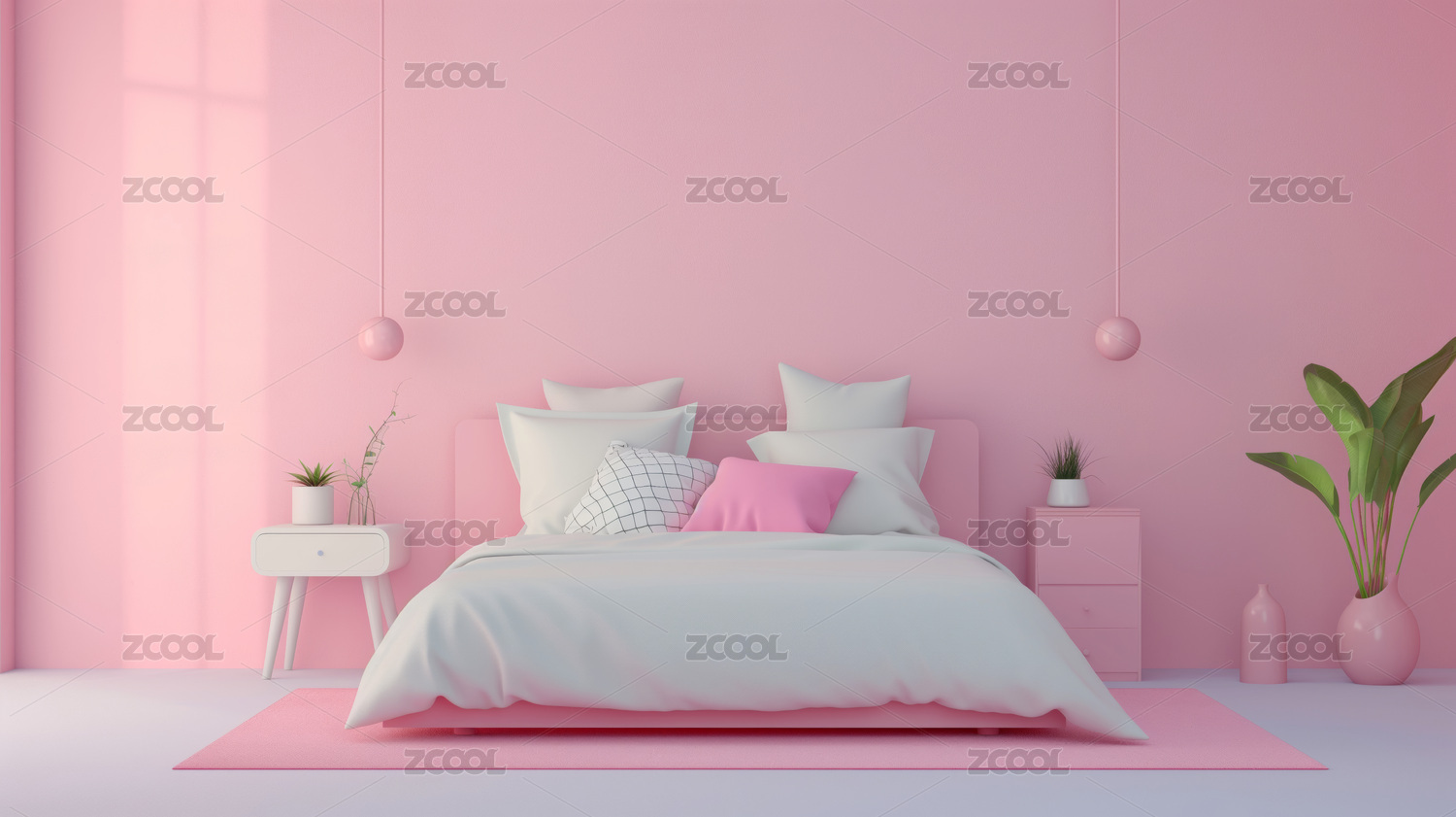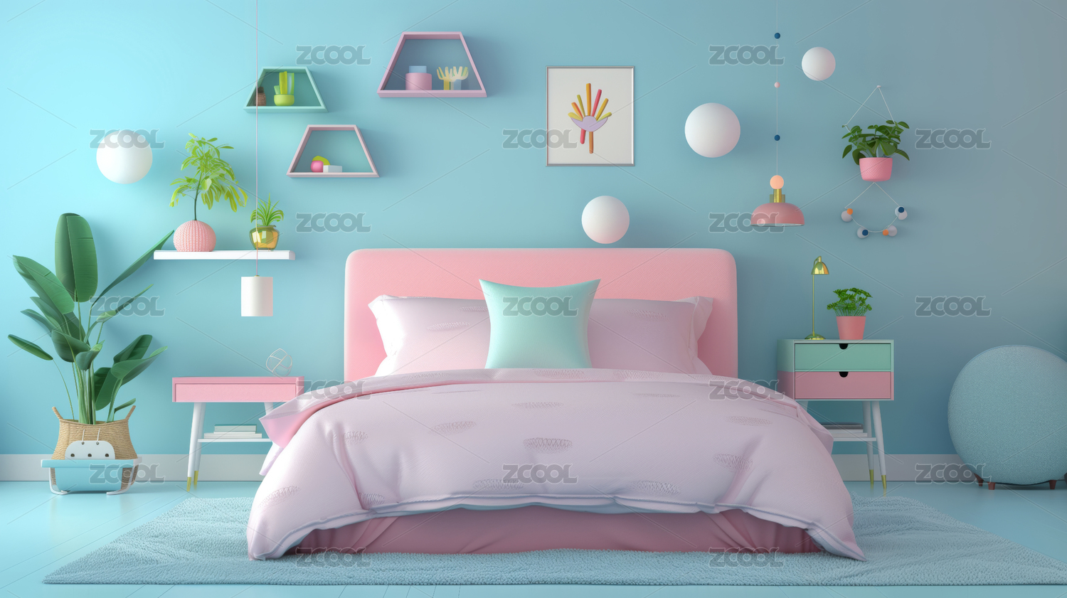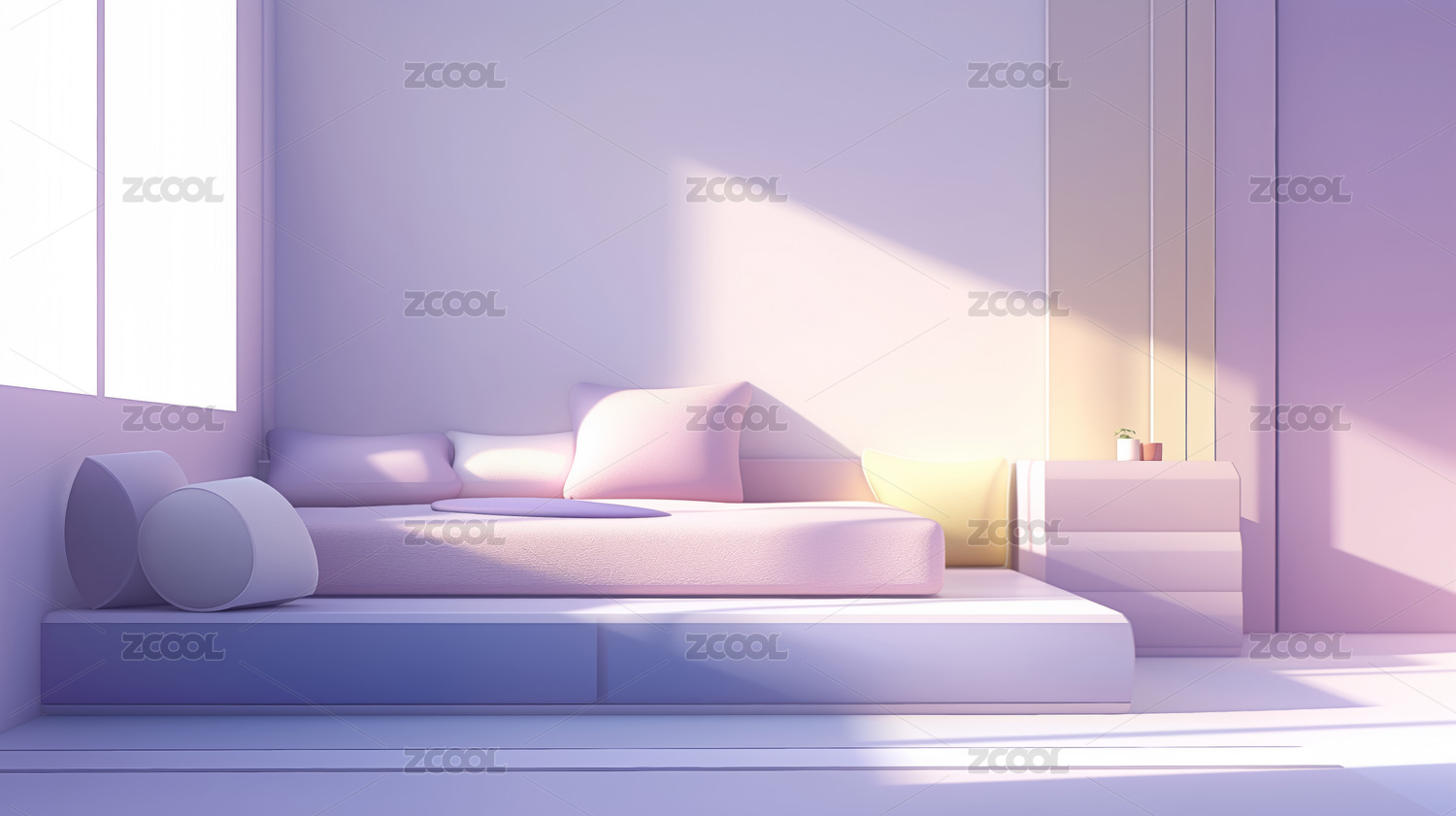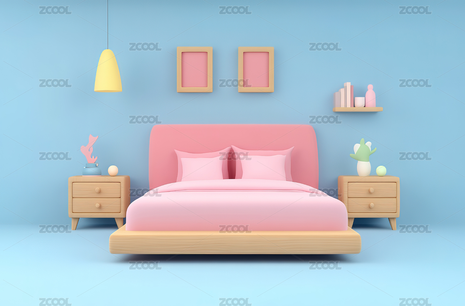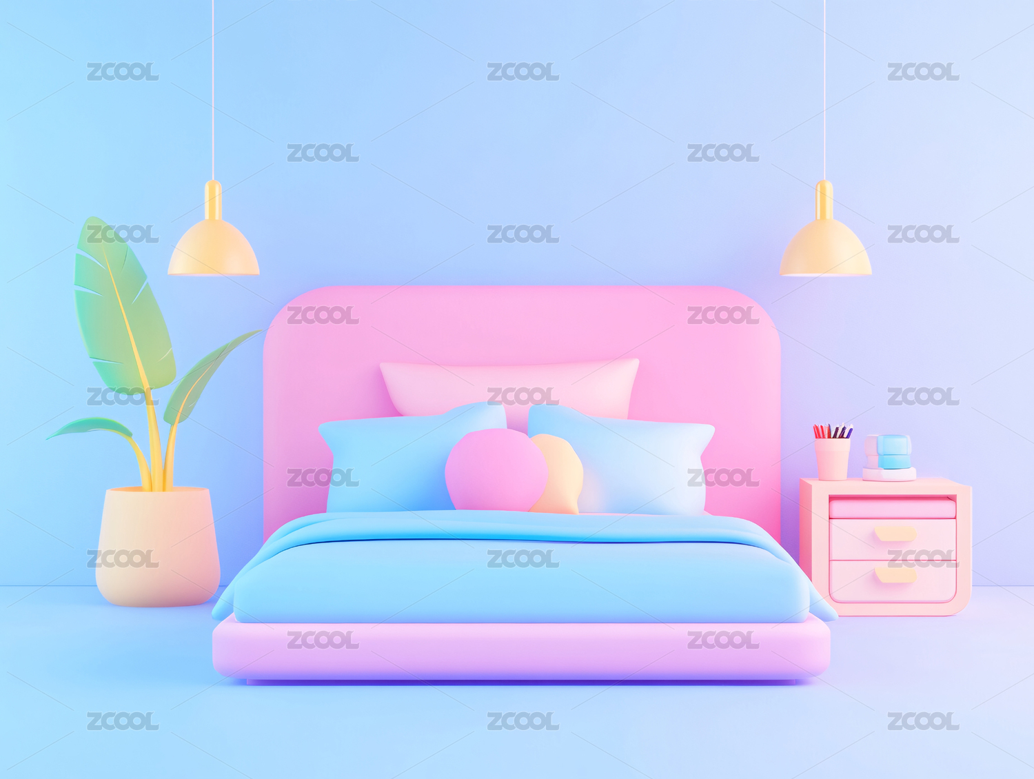 室内卧室3D温馨卡通风格三维渲染概念背景