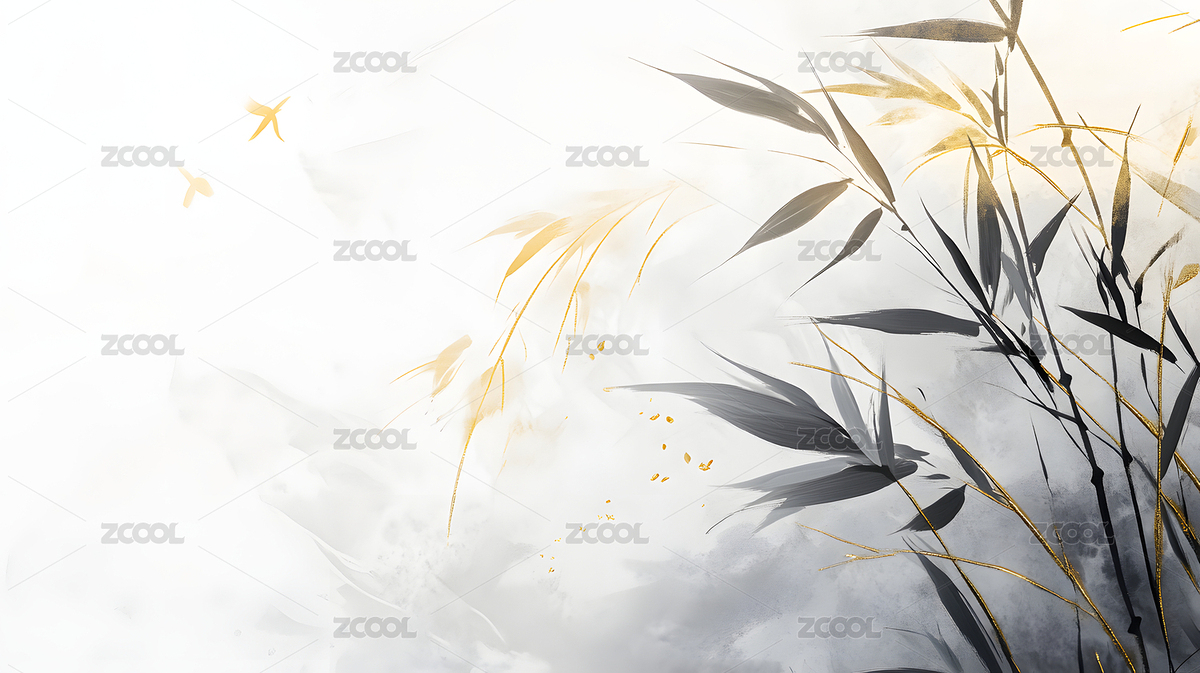 艺术, 背景,水墨画, 竹叶, 金色, 灰色, 水彩, 抽象, 植物, 叶子