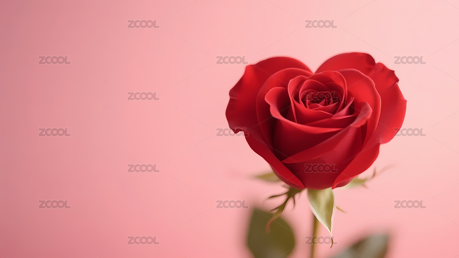 红玫瑰花朵与粉色渐变背景的浪漫构图