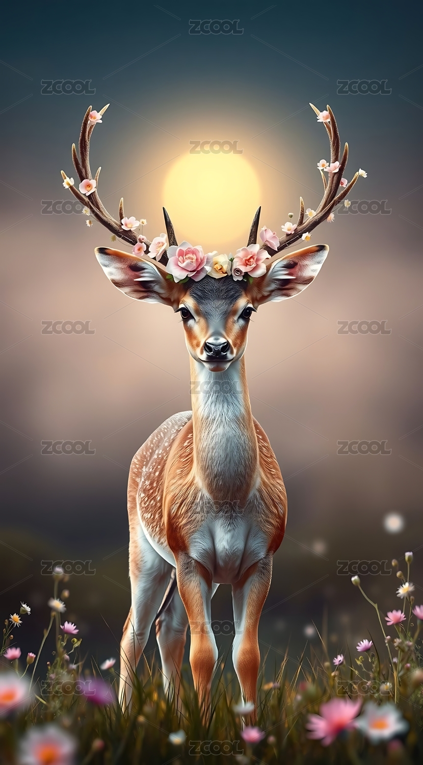 梅花鹿,冲向,奔跑,鱼眼,镜头