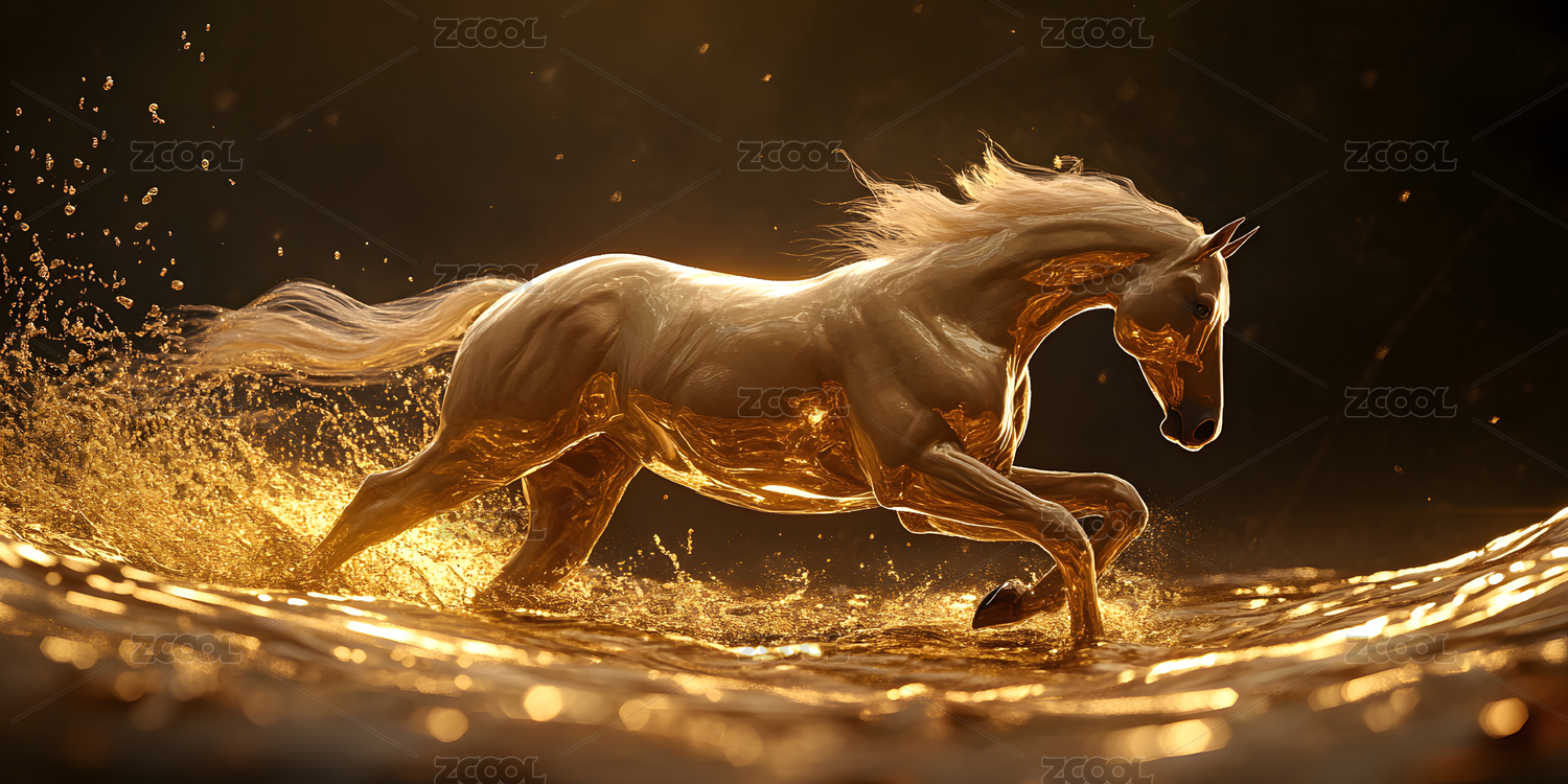 一匹水中奔跑的金色马