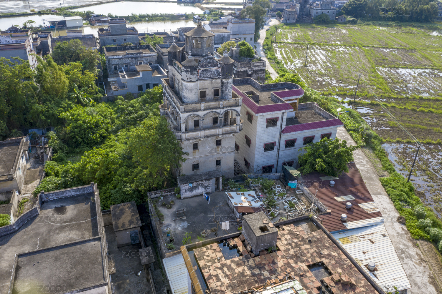 冬季,广东,江门,中西合璧,民居,防御工事,开平碉楼,航拍,晴天,世界文化遗产