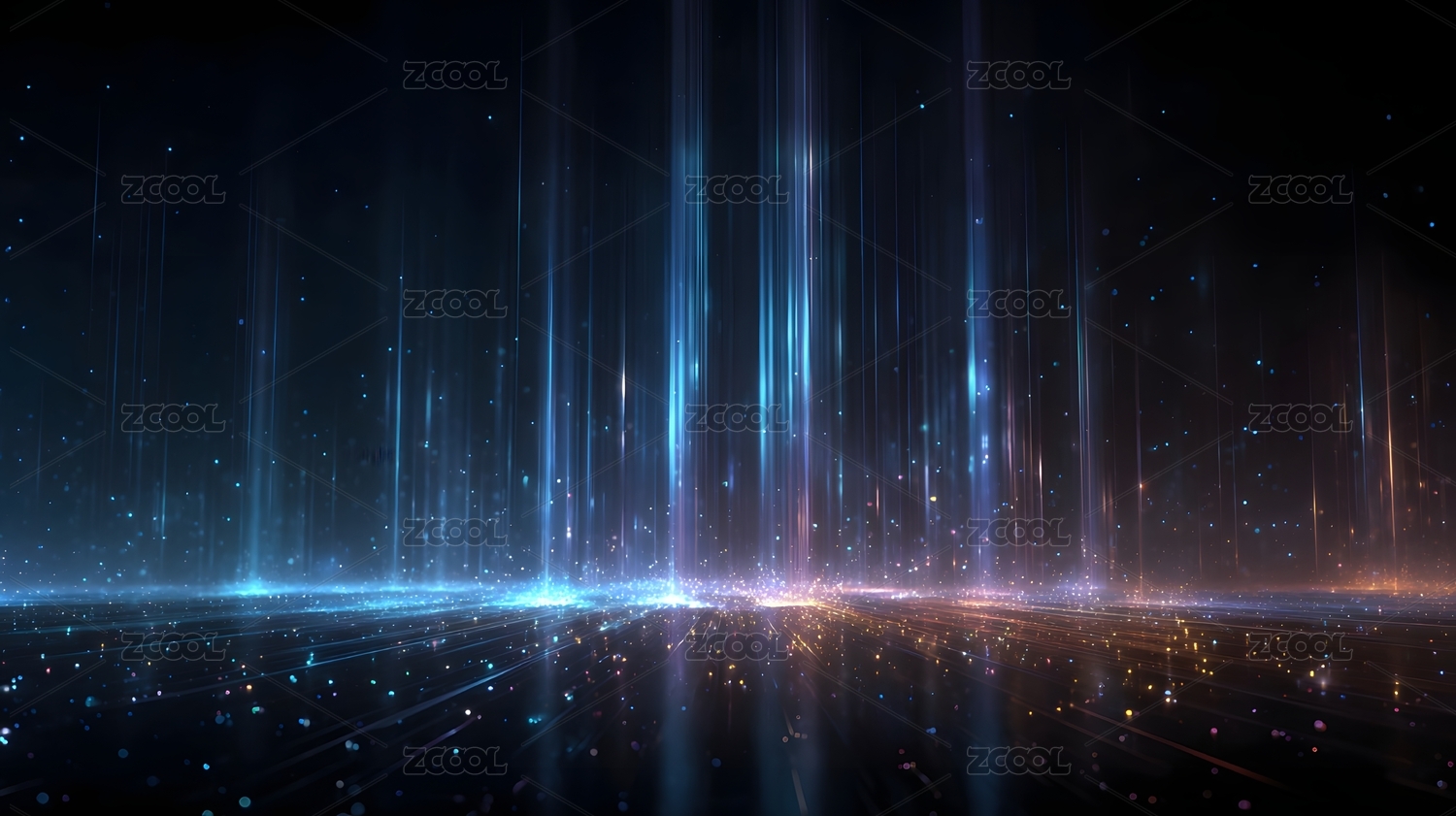 红蓝交织光线粒子瀑布