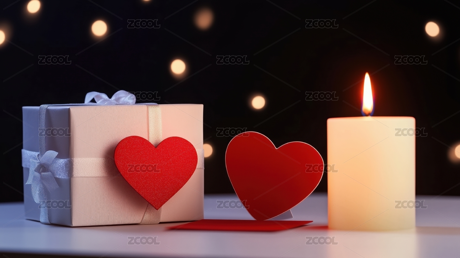 白色,礼物,棕色,氛围,情人节,红色,温馨,浪漫,爱心,烛光