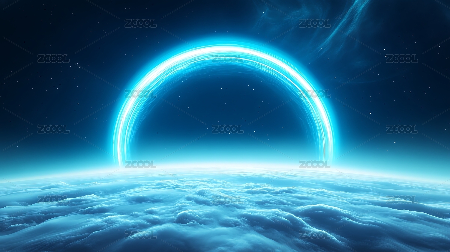 蓝色,科技,未来,发光,宇宙,神秘,太空,光环,科幻,地平线