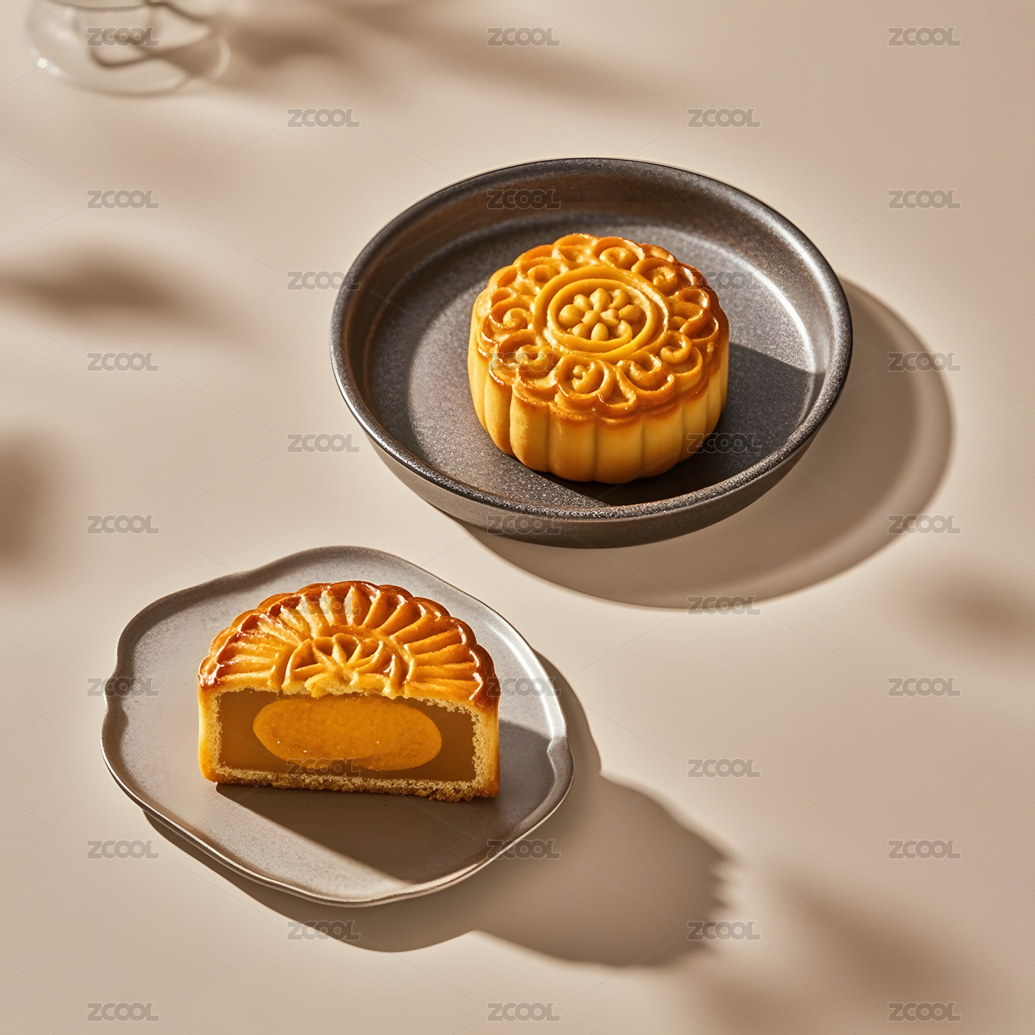 月饼切面展示馅料丰富诱人背景简洁优雅