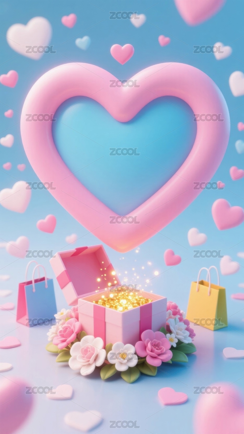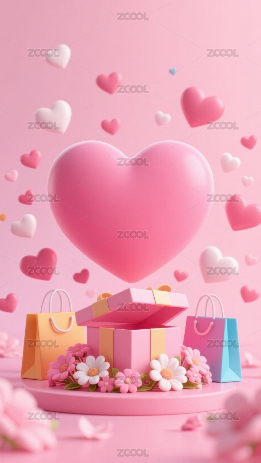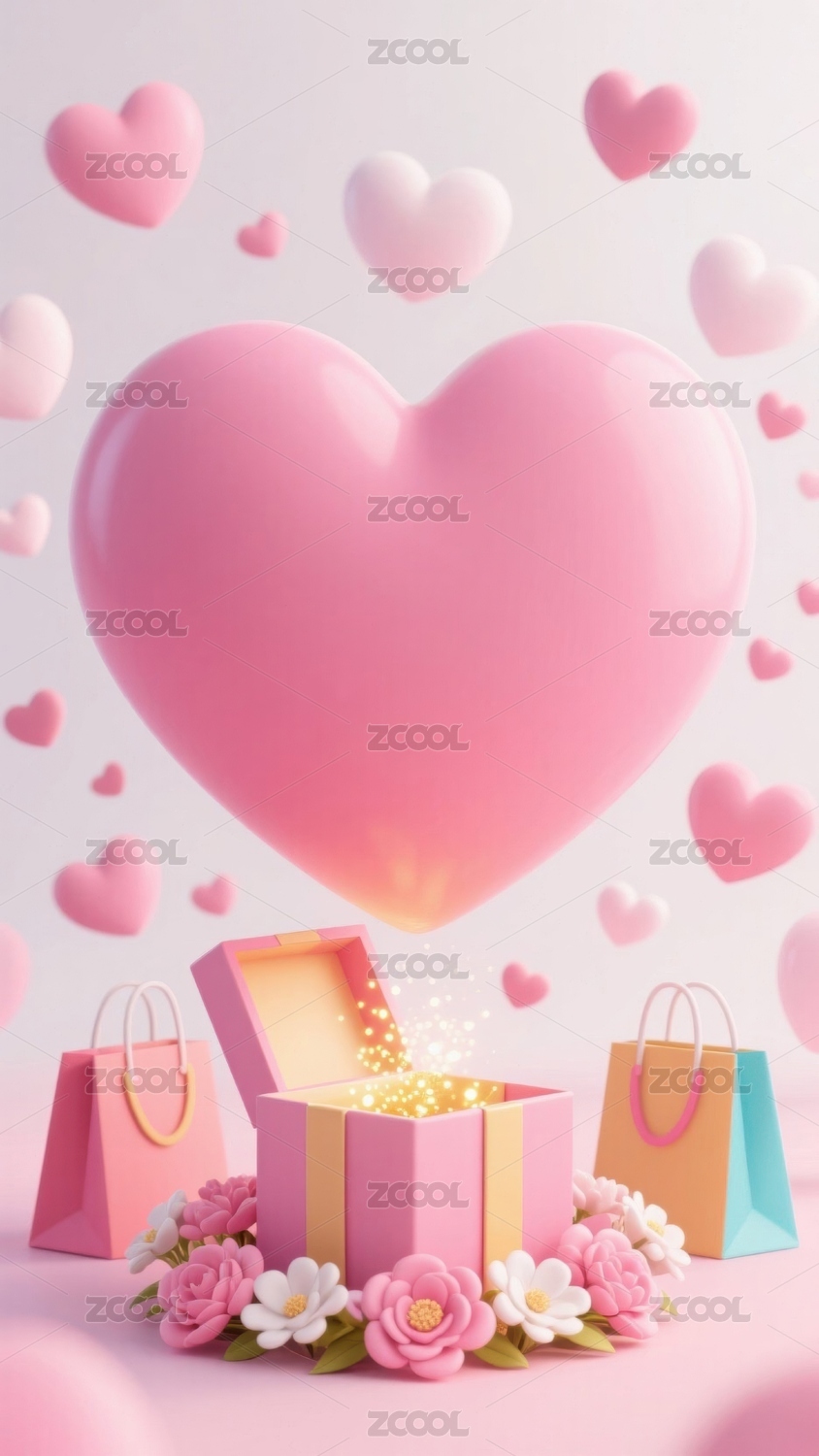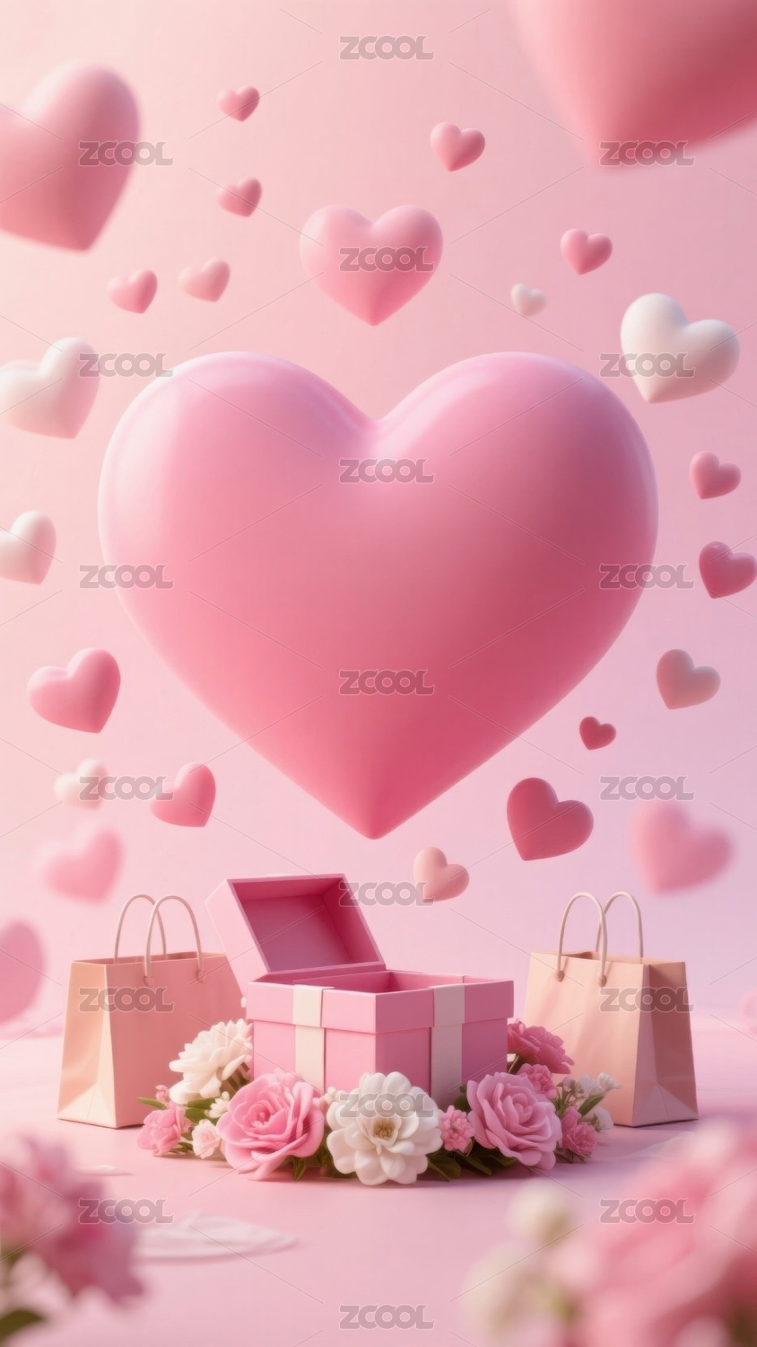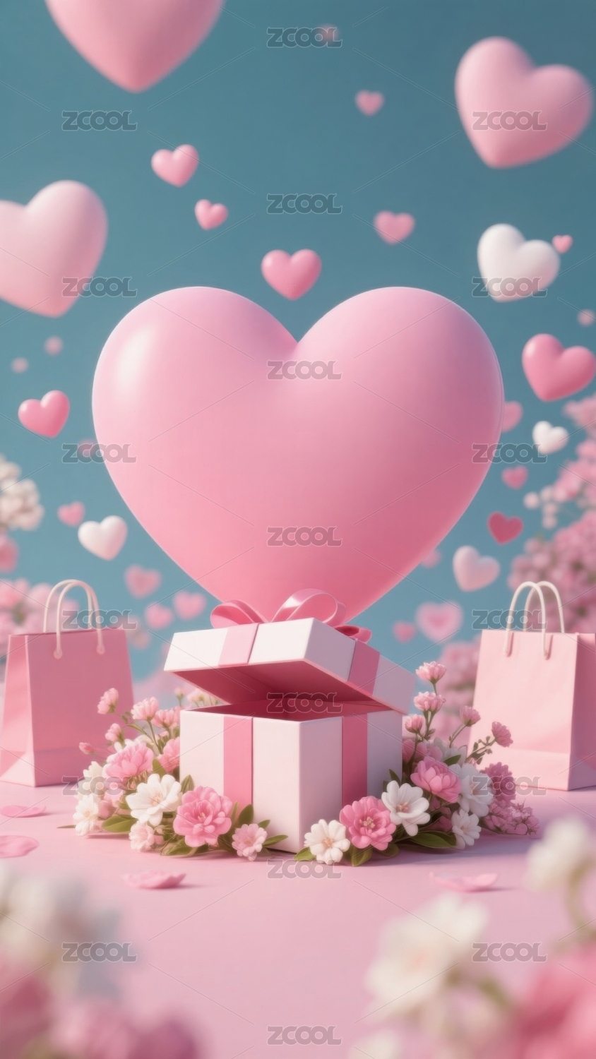 爱心,背景,紫色,粉色,礼物,气球,玫瑰花,花瓶,展台,装饰