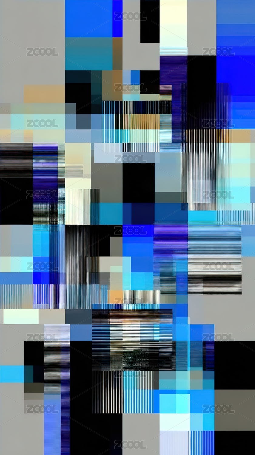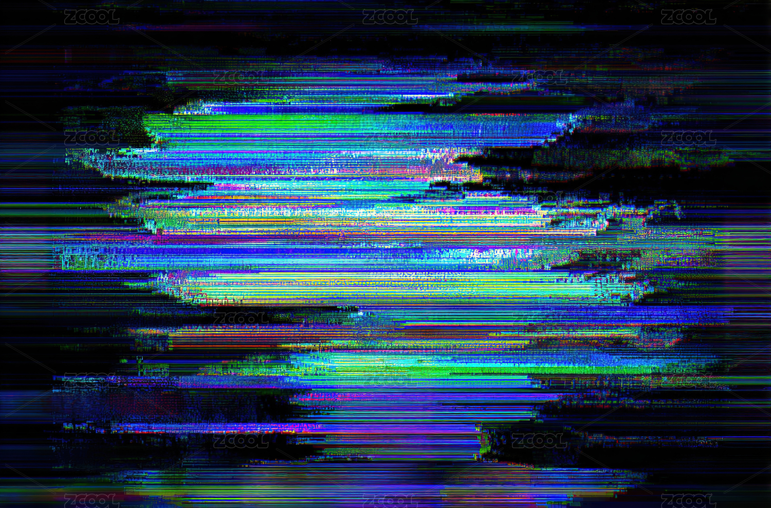黑色背景上彩色线条与圆形构成的故障艺术风