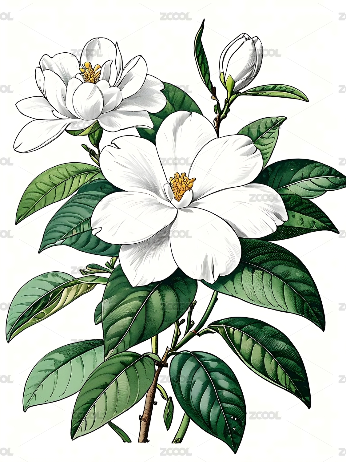 茉莉花栀子花植物花卉插画