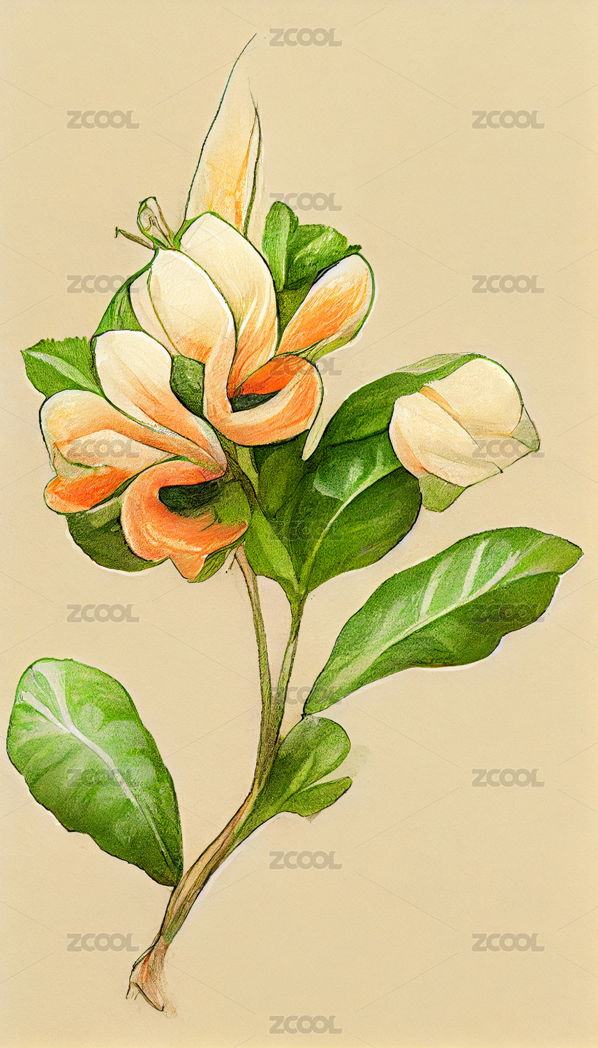复古茉莉花手绘插画