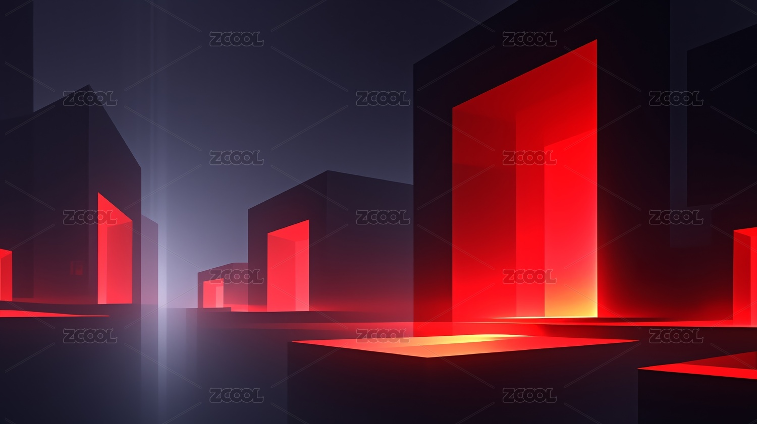 抽象蓝色方块与红色光线交织