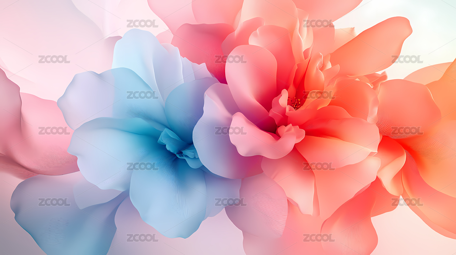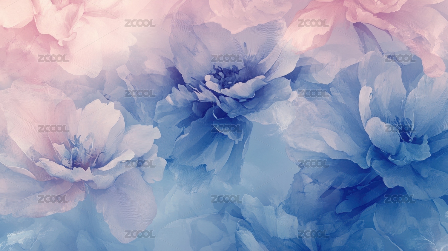 粉色与蓝色花朵的柔和渐变