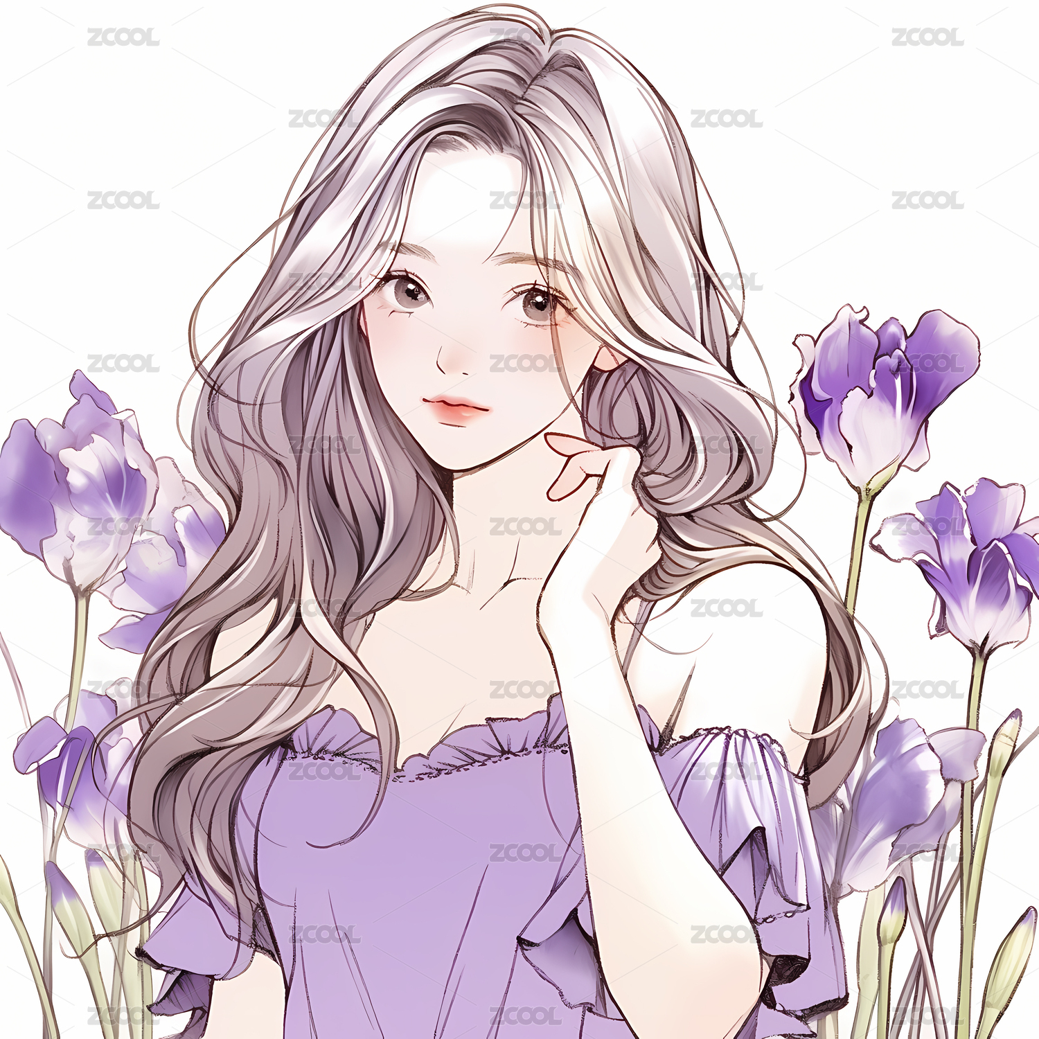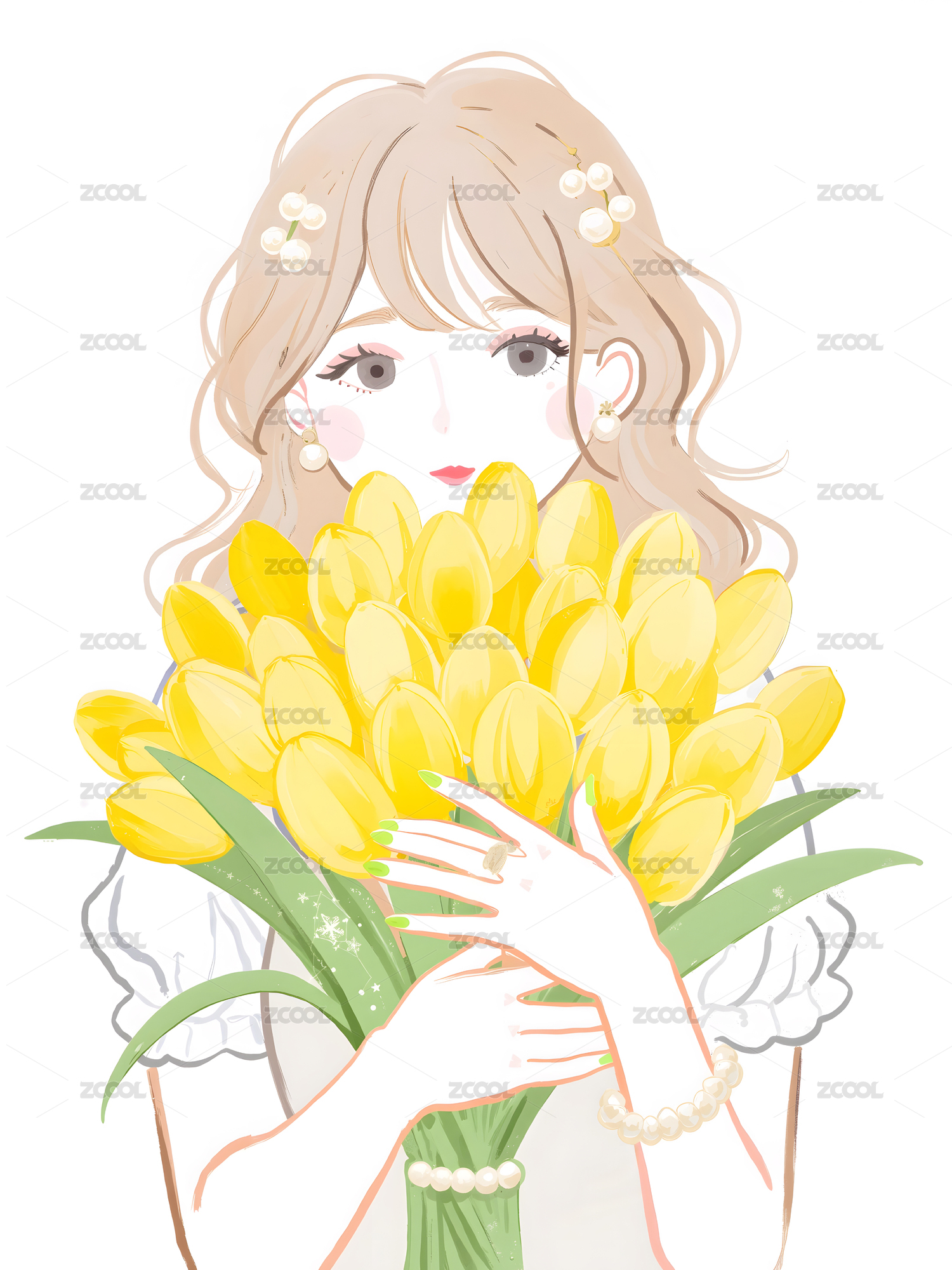 少女,百合花,花束,清新,唯美,治愈,插画,恬静,温柔,花卉