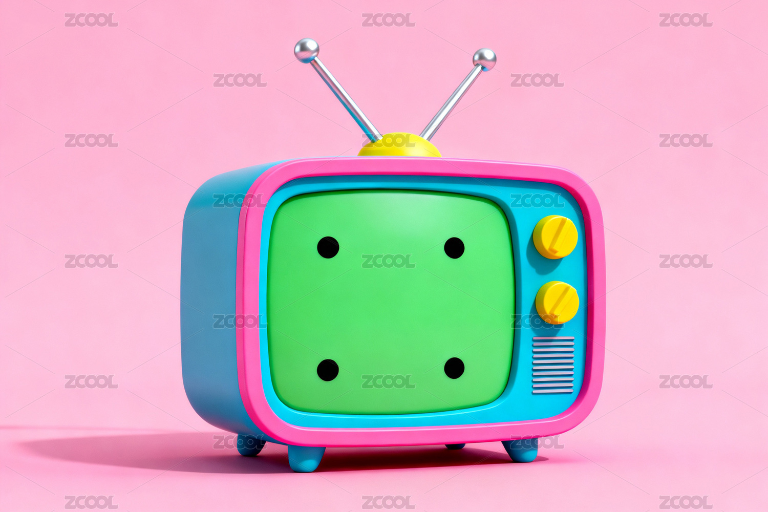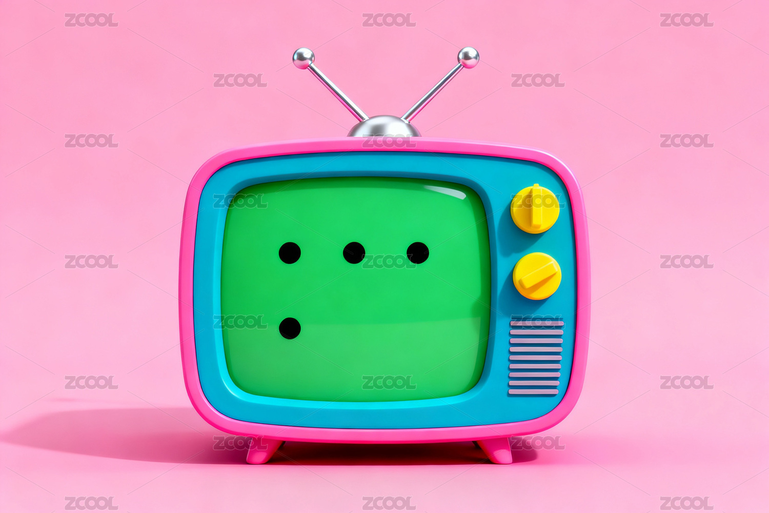 复古,电视,黄色,蓝色,屏幕,天线,植物,室内,装饰,彩色