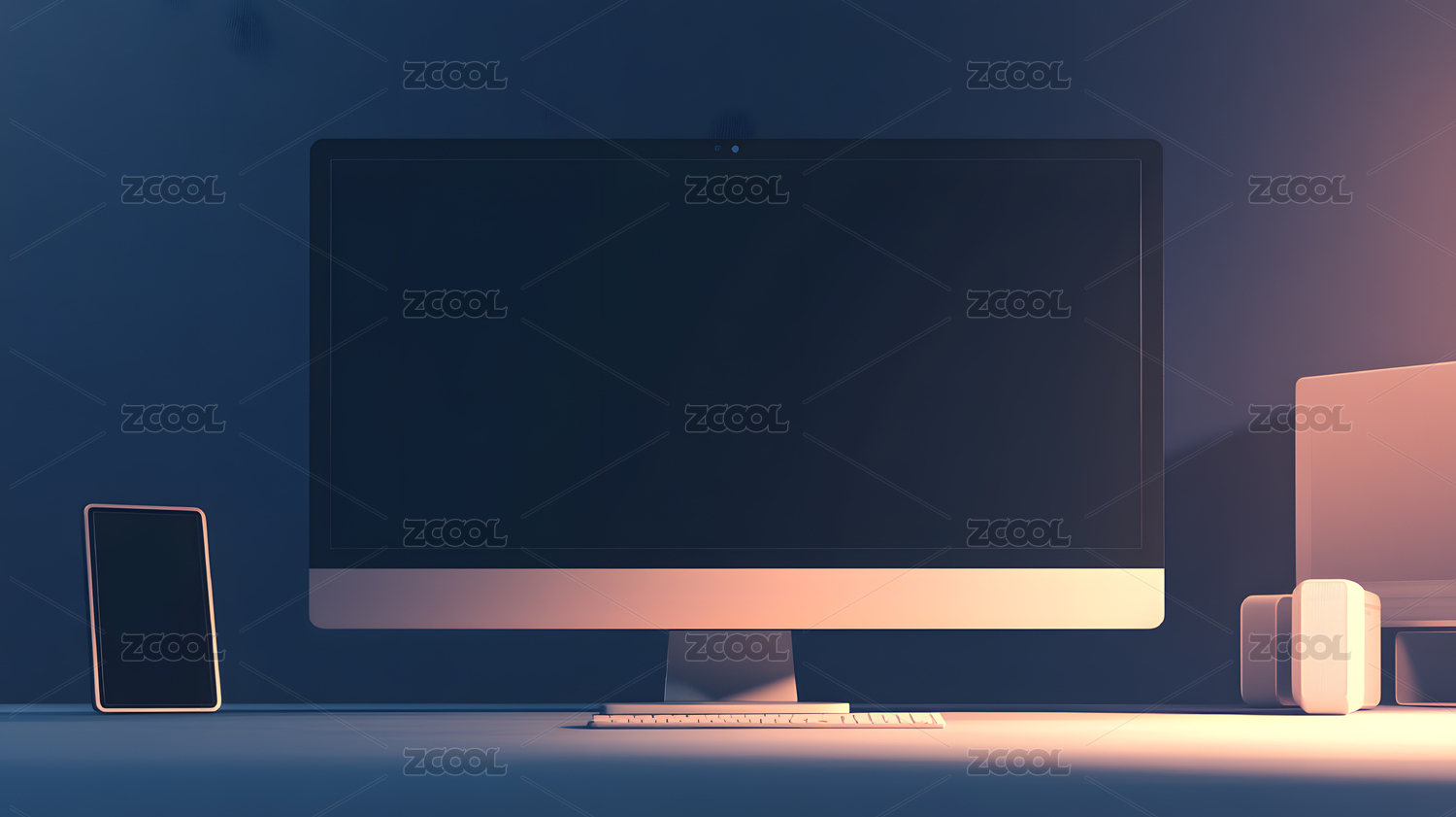 电脑,显示器,键盘,鼠标,鼠标垫,主机,科技,蓝色,背景