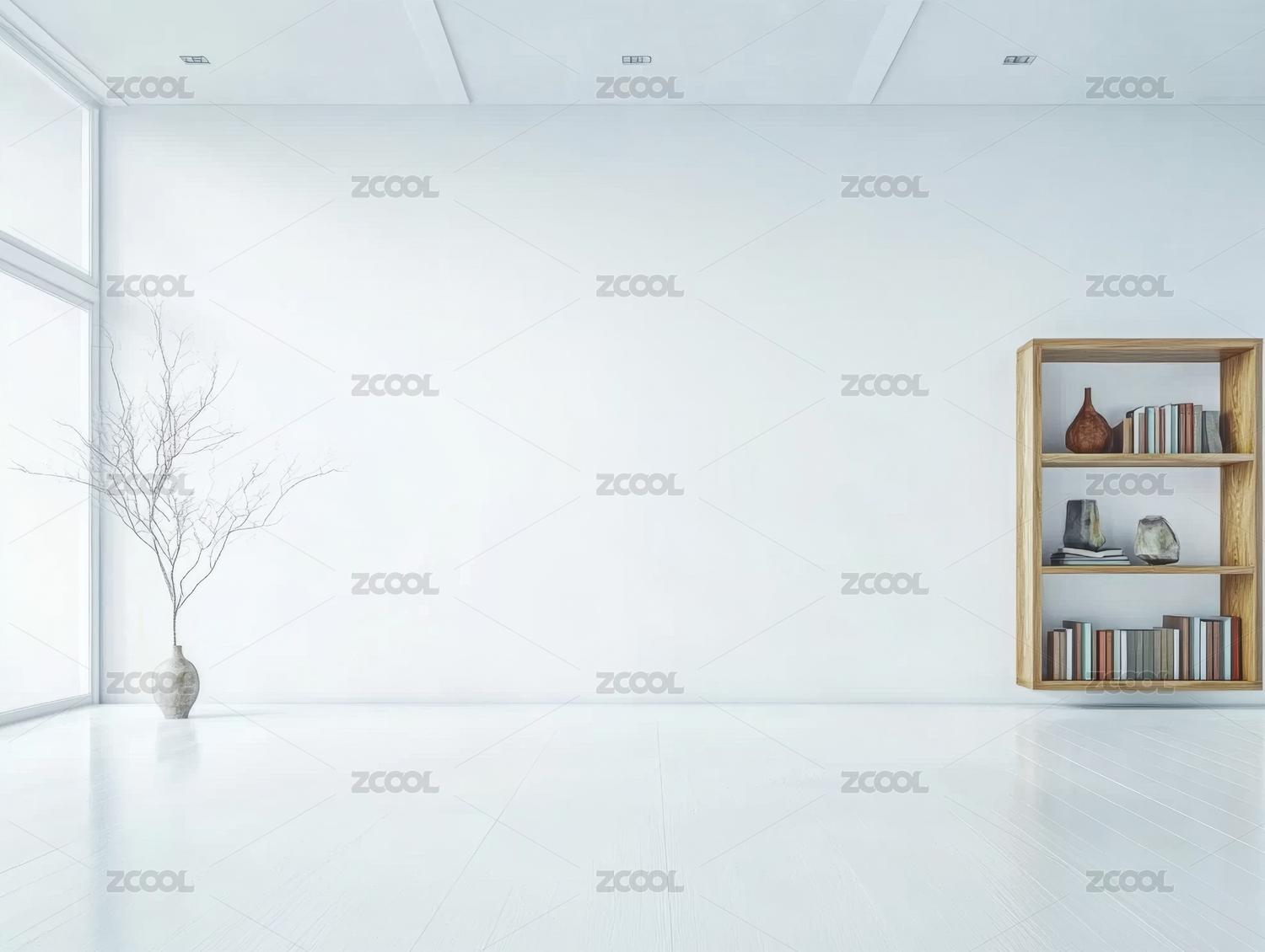 现代,简约,室内,设计,书架,植物,阳光,白色,窗户