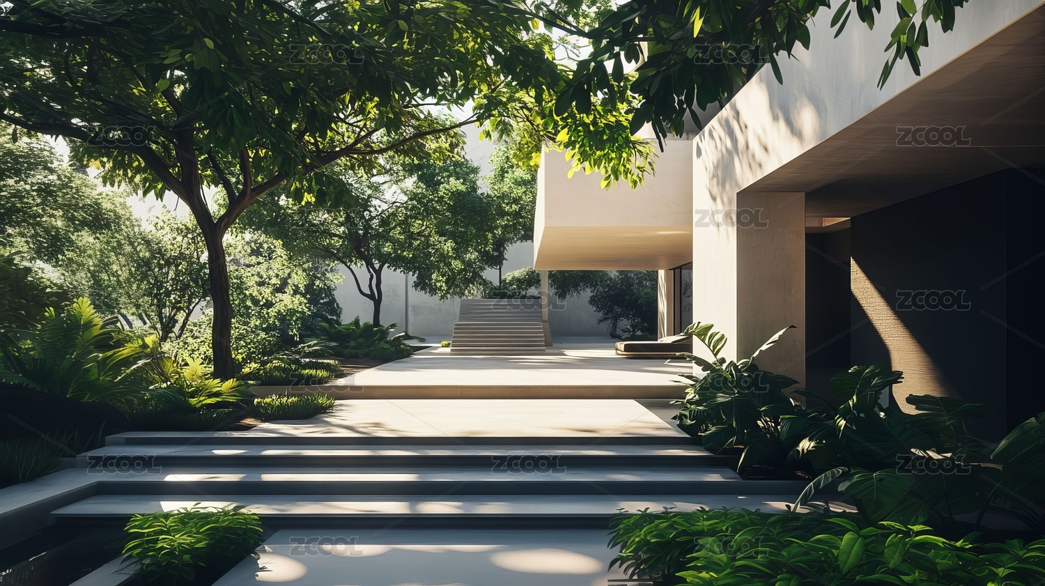 现代,建筑,热带,雨林,游泳池,雾气,自然,户外,休闲椅,绿色