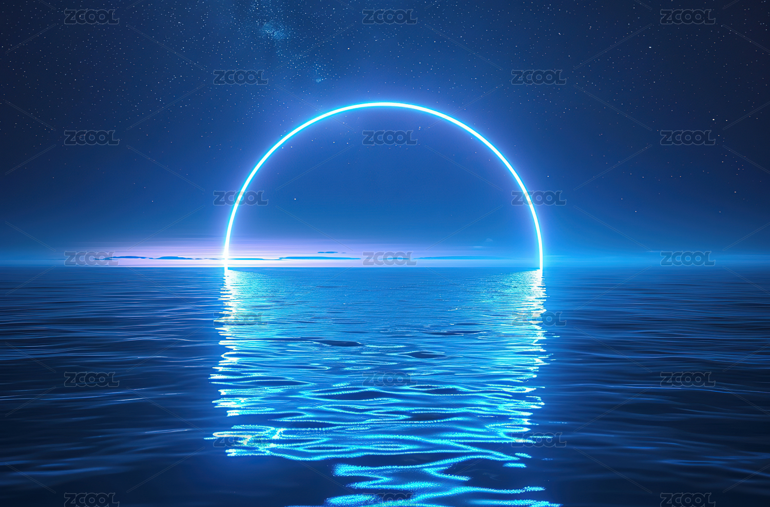 背景,商务,抽象, 蓝色,明月, 海面, 波光, 倒影, 夜晚, 星星