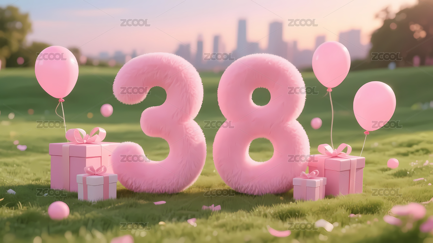 粉色数字庆祝场景