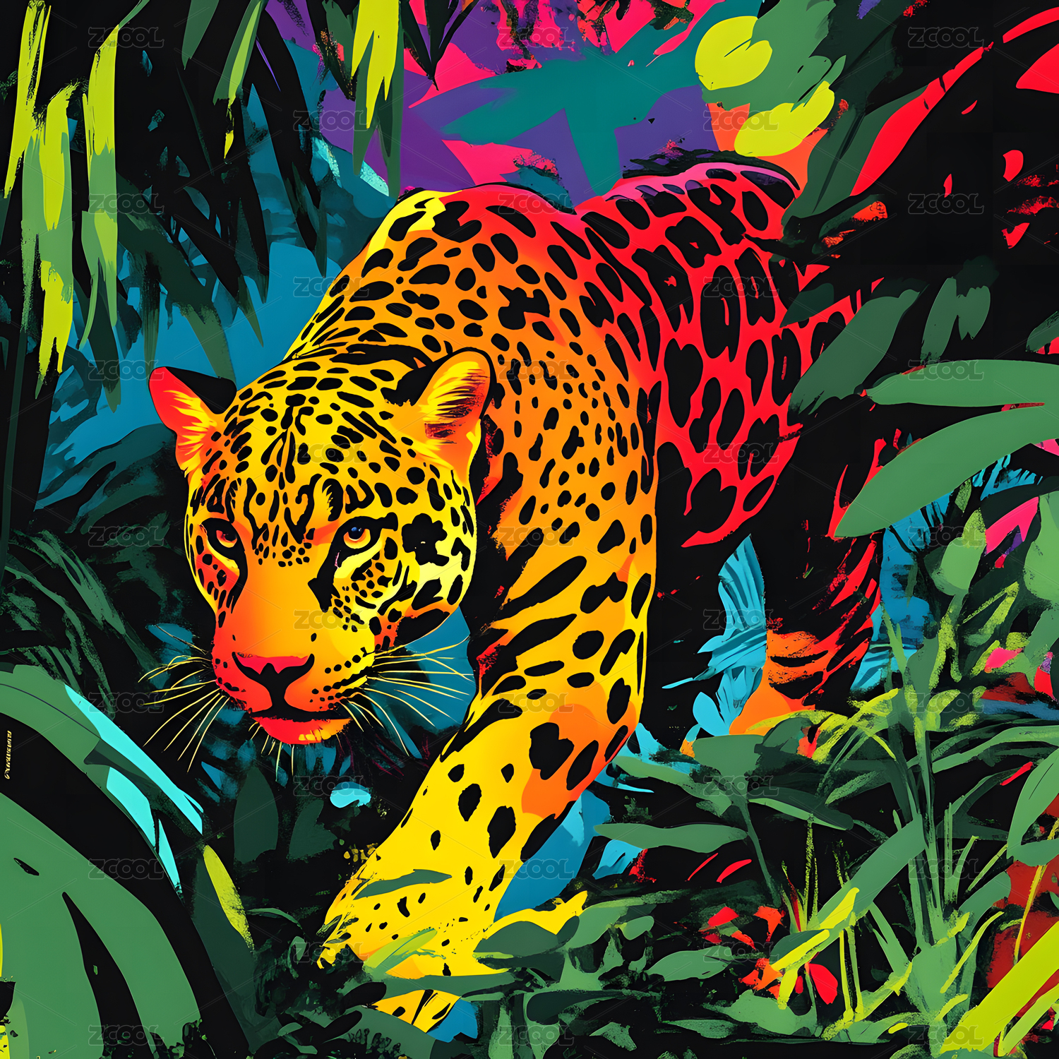 潮流嘻哈暗黑金钱豹T恤装饰图案