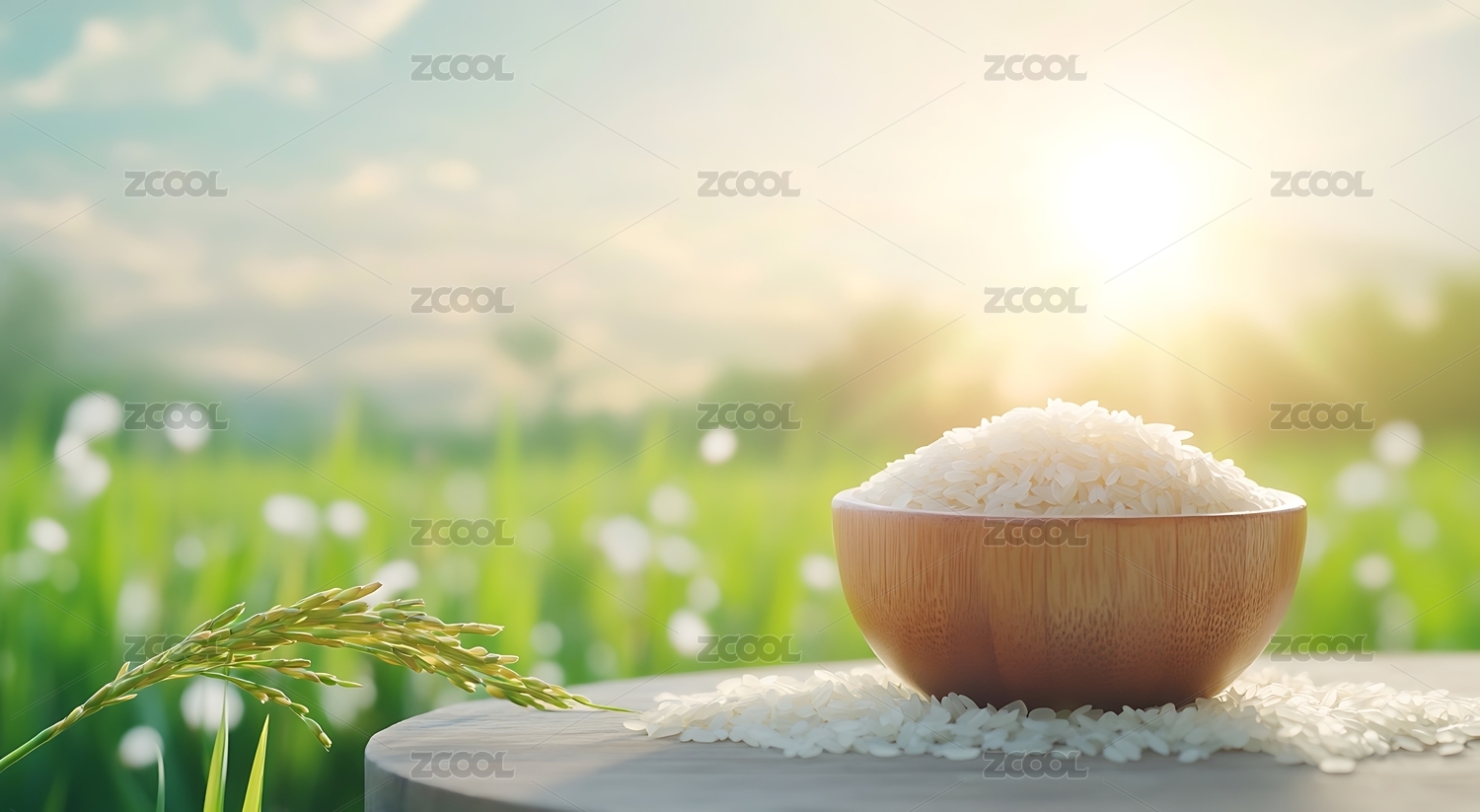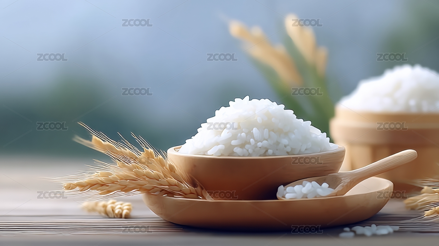 桌上吃剩的一碗大米饭和洒出的米粒插画绘画
