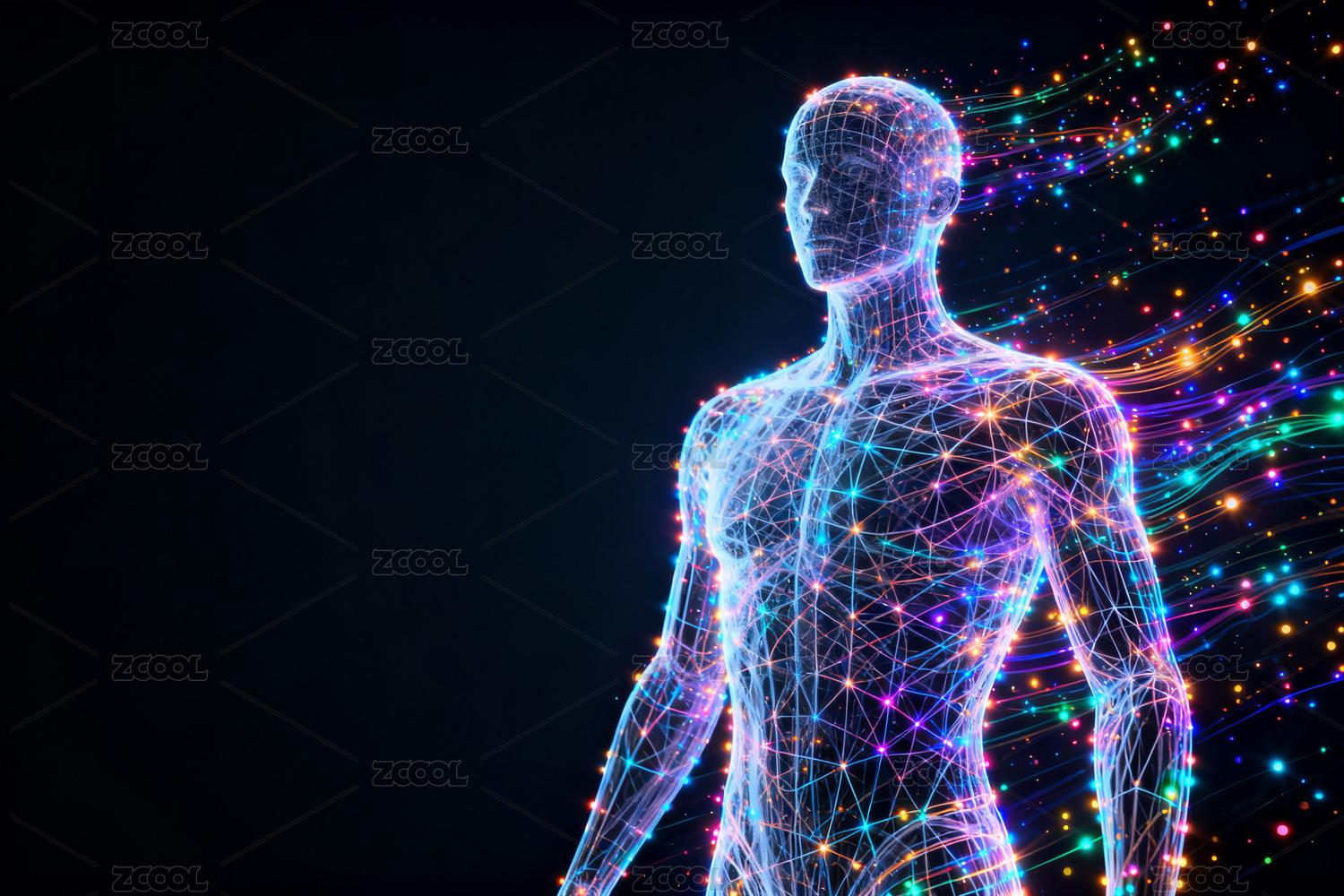 未来人工智能蓝色3D粒子智慧仿生人概念