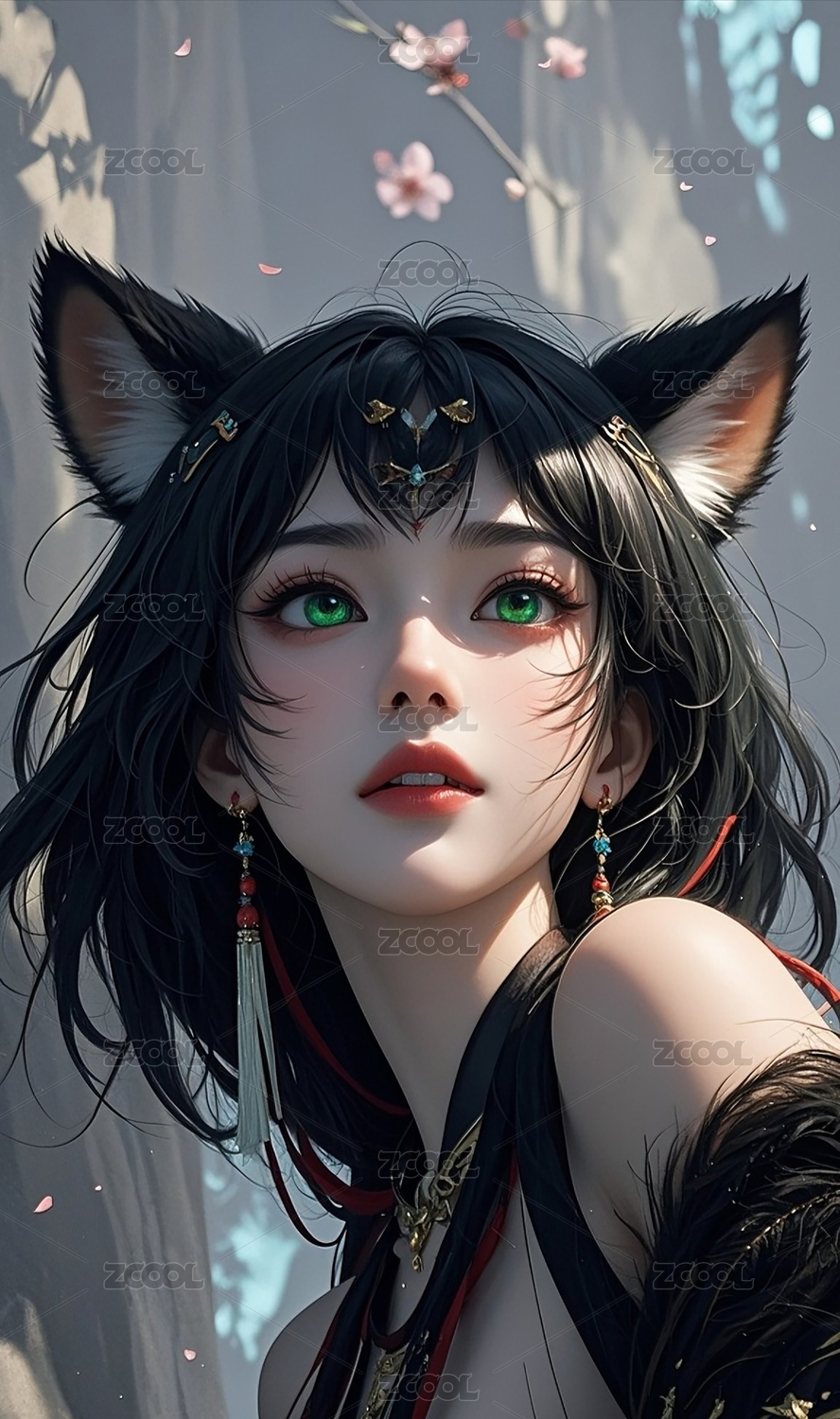 插画,时尚,动漫,漂亮,女人,狐耳,少女,性感,画像,红衣
