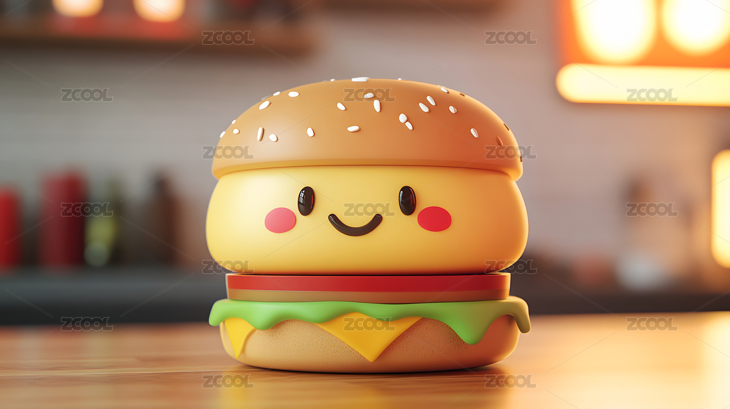 3D渲染立体汉堡可爱表情