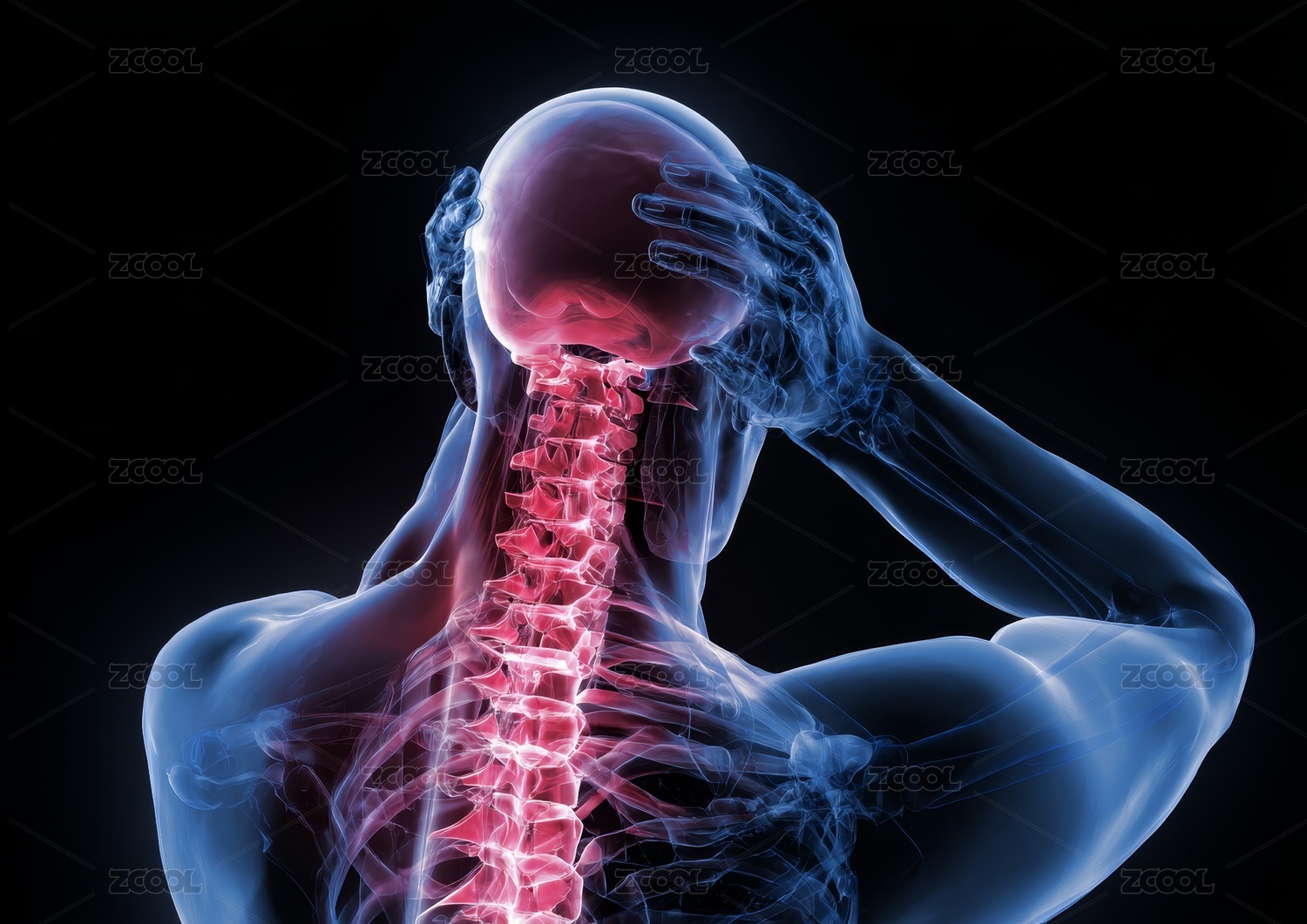 人物,女人,背影,脊椎,疼痛,X射线,透明,全息,3D,黑色