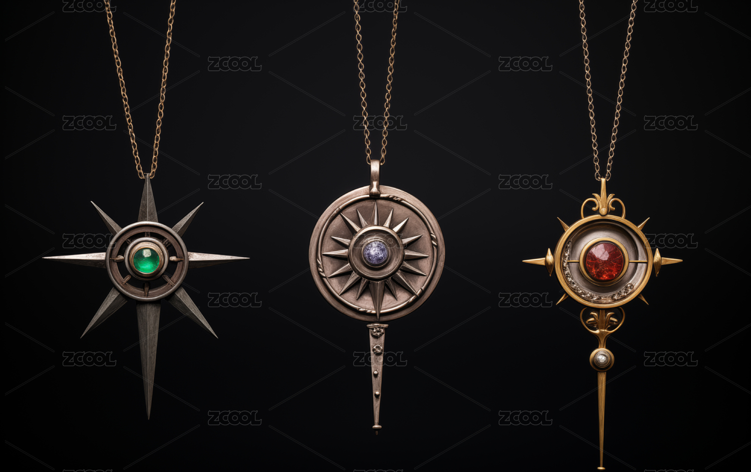 黑底游戏装备珠宝项链金色首饰3D立体插画