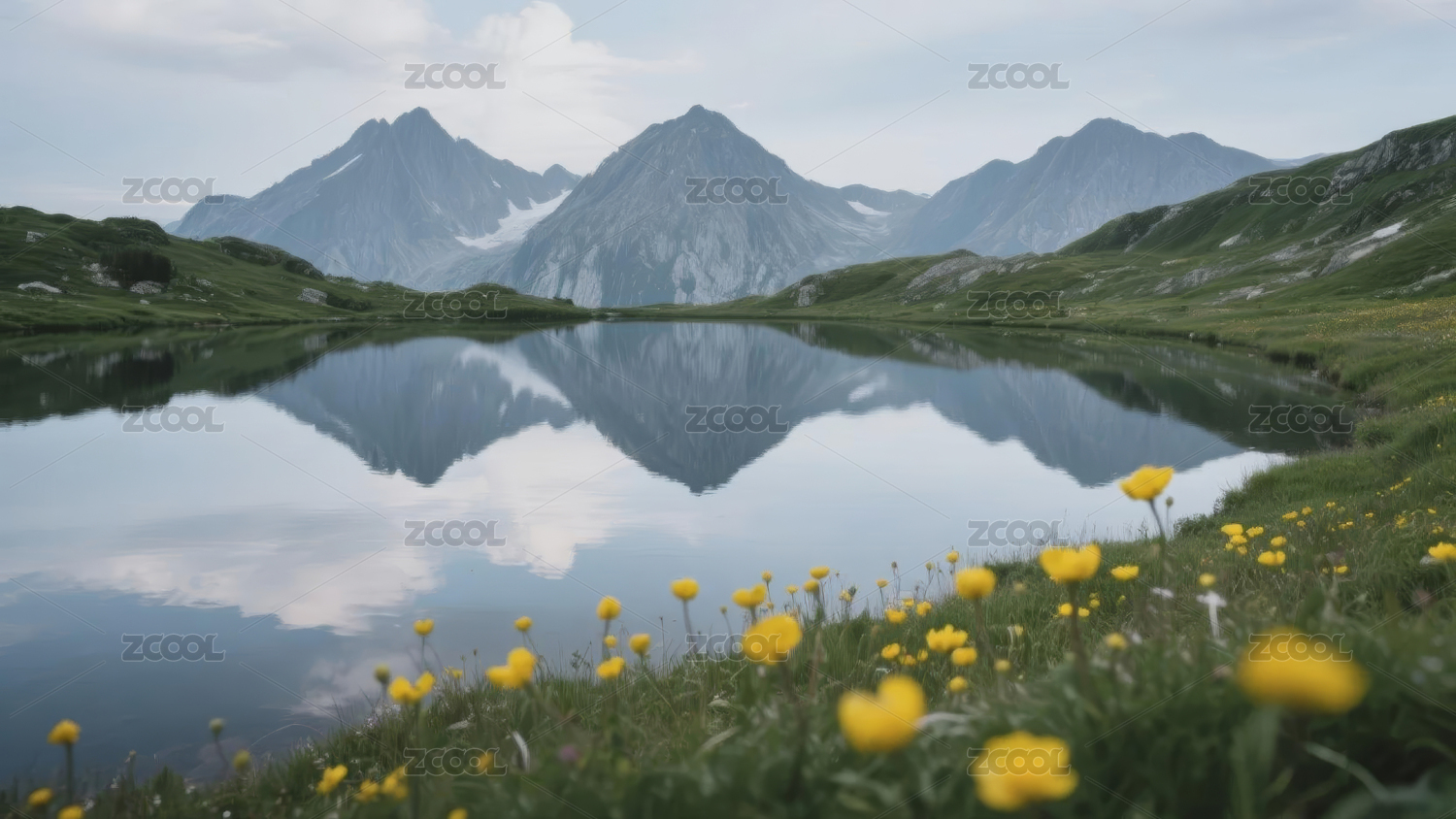 山湖倒影美景