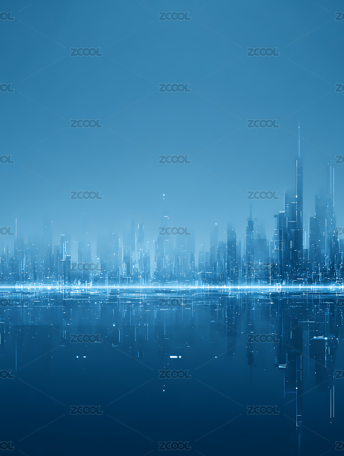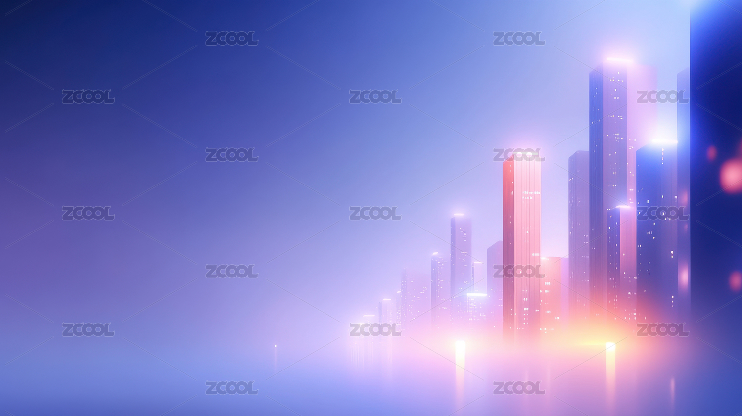 轻盈透气的城市建筑背景:发光轮廓与蓝天