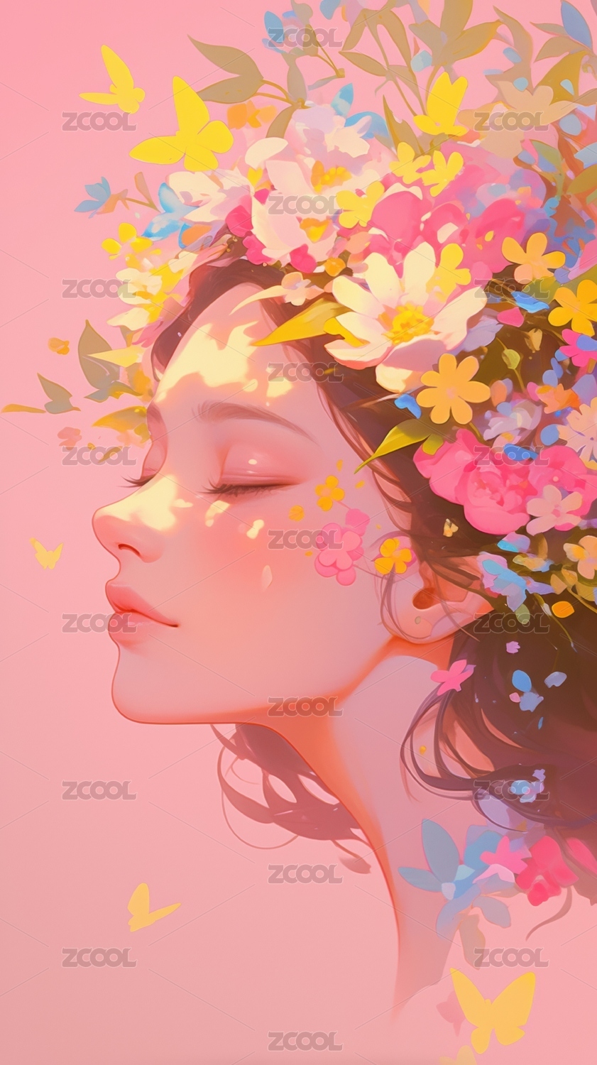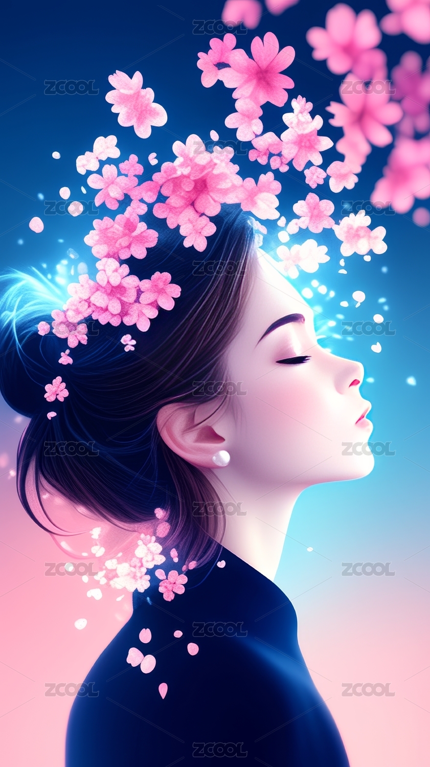 少女,樱花,花瓣,唯美,恬静,意境,粉色,梦幻,浪漫,清新