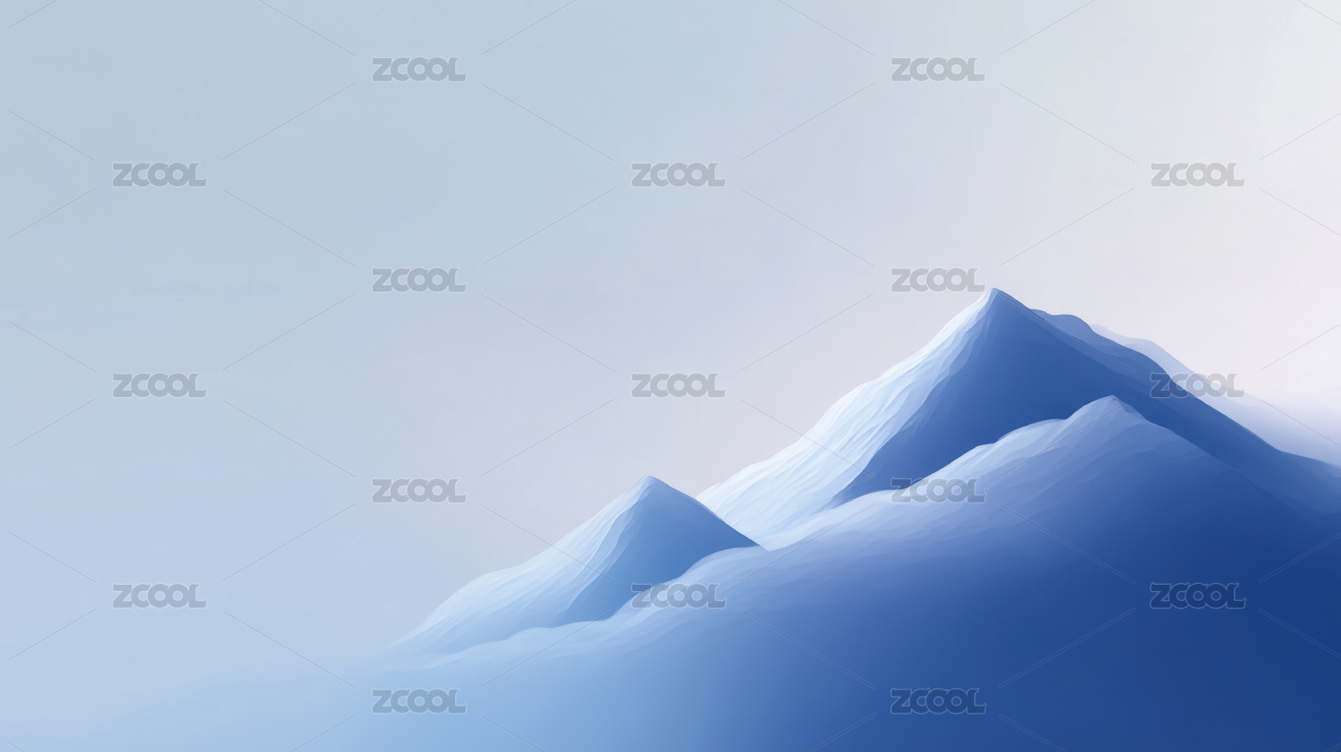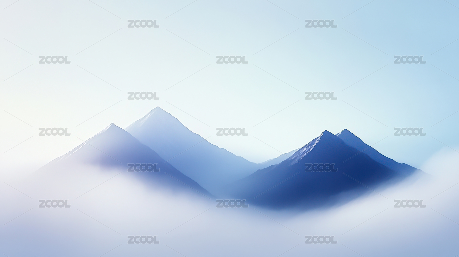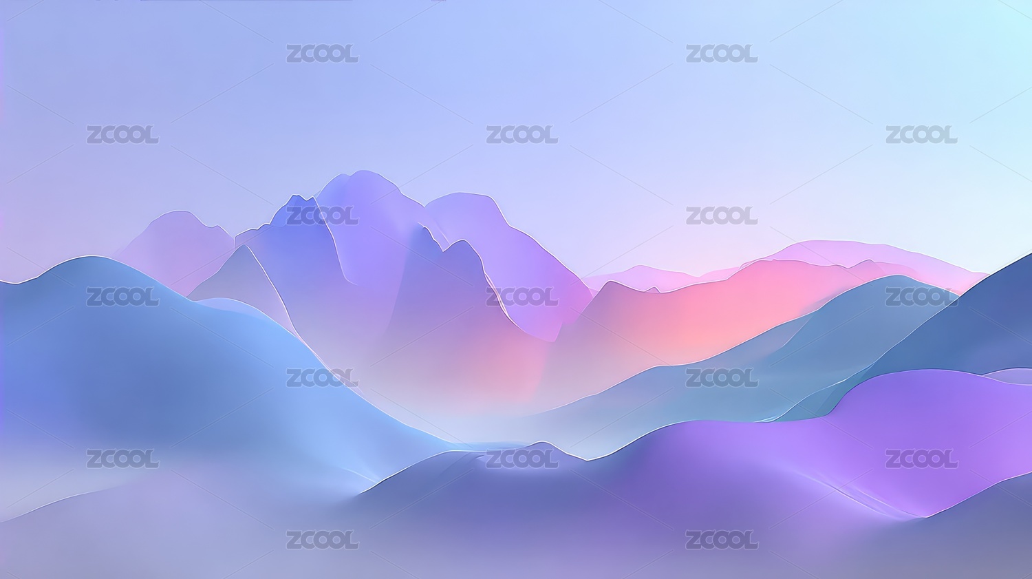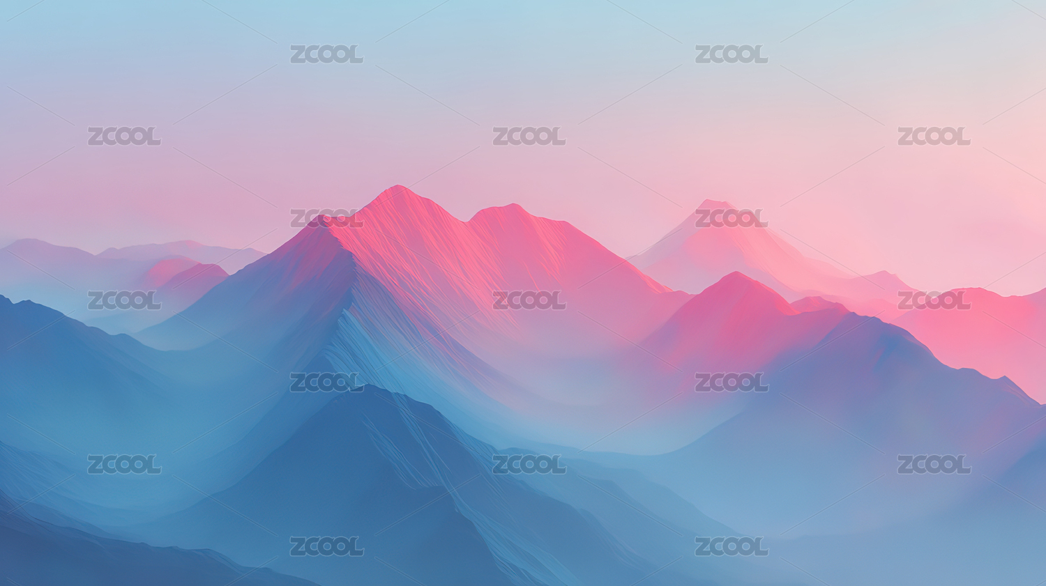 粉蓝渐变天空下群山层叠呈现梦幻清新的山水