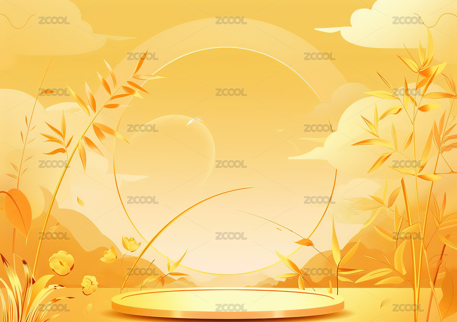 国风秋天红叶背景展台