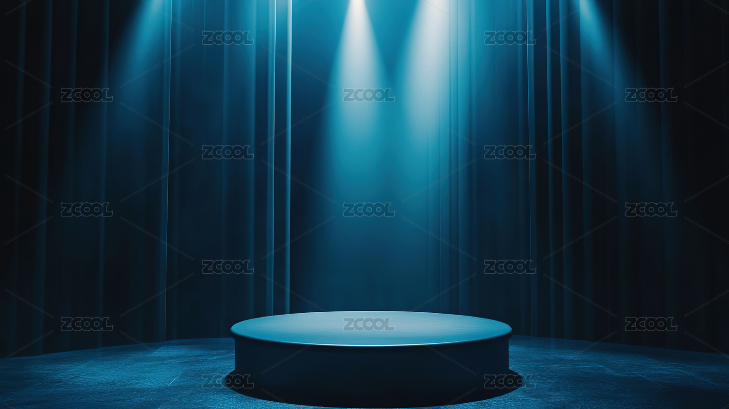 蓝色,光线,现代,创意,平台,舞台,圆形,聚光灯,表演