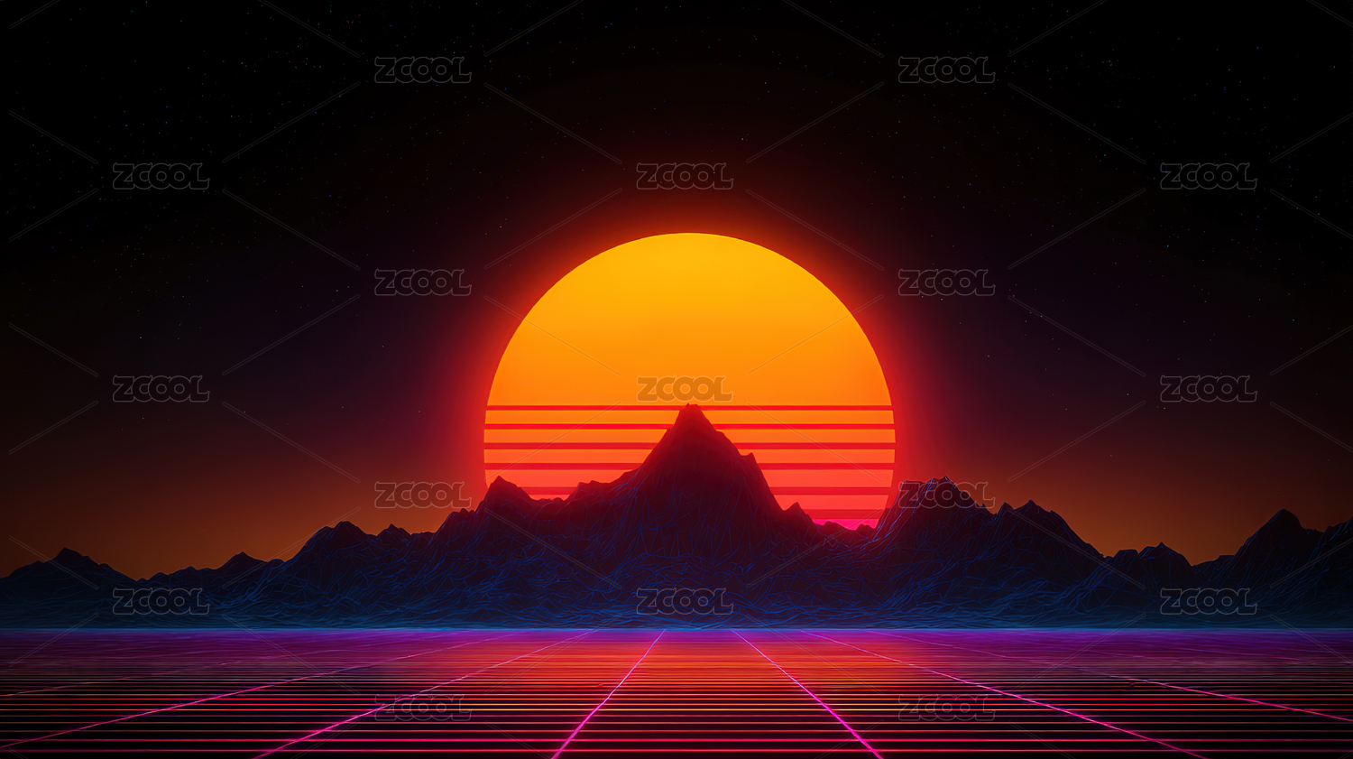粉色,科技,未来,蓝色,山峰,风景,日落,数字,霓虹,复古
