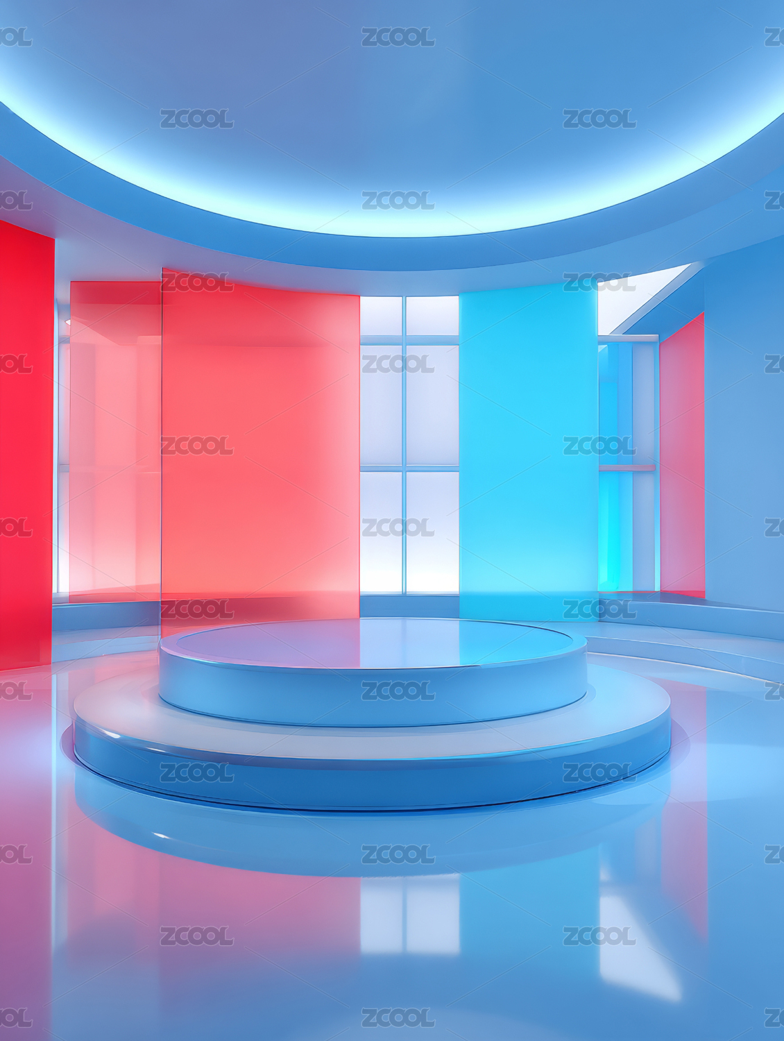 未来感,科技,展示台,霓虹灯,橙色,蓝色,现代,室内,设计