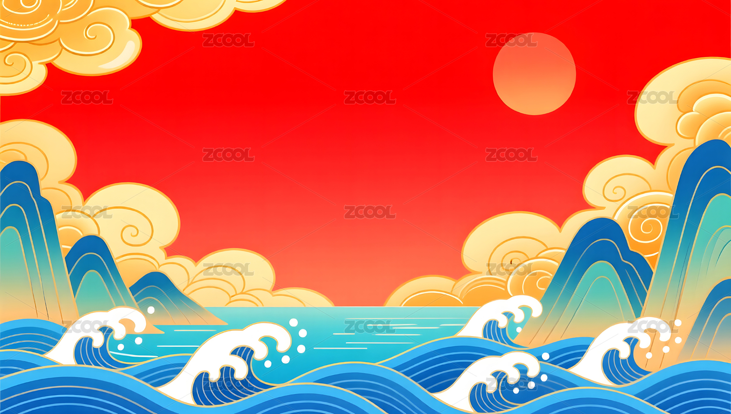 新年春节国潮祥云底纹传统祥云图案红色背景
