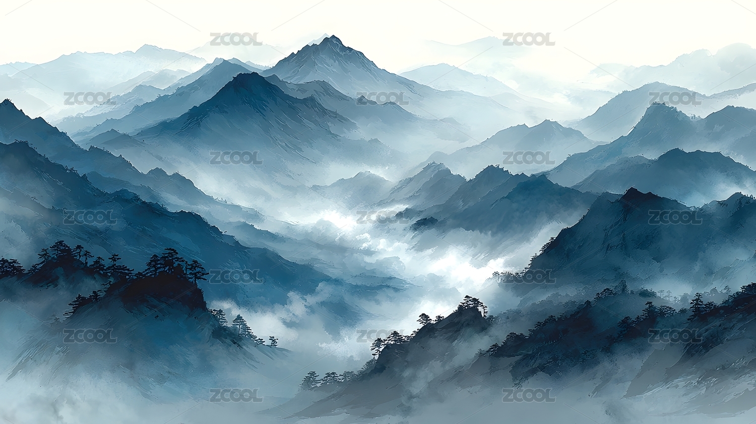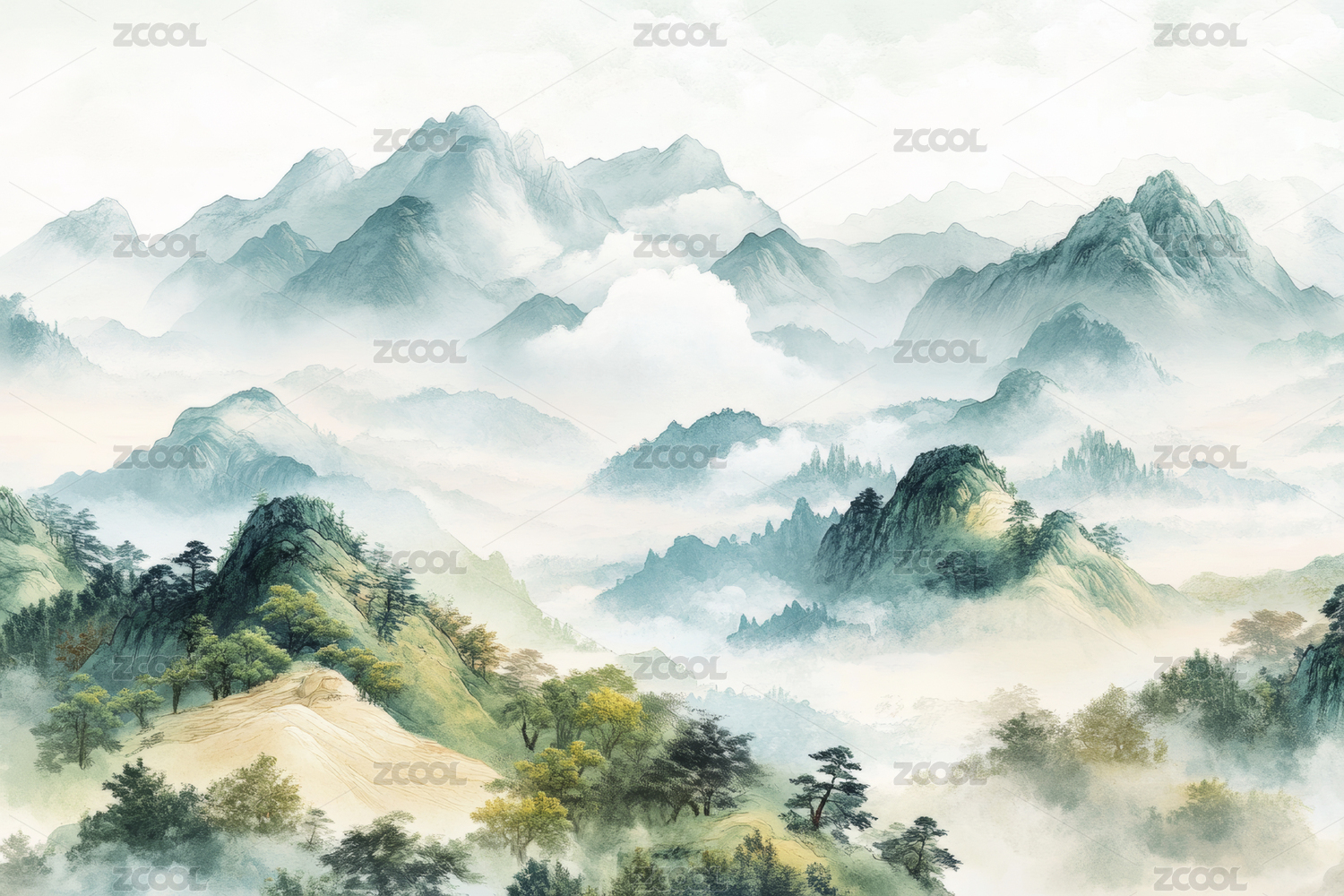 春季,水彩,插画,插图,海报,设计,背景,春天,季节,山峰