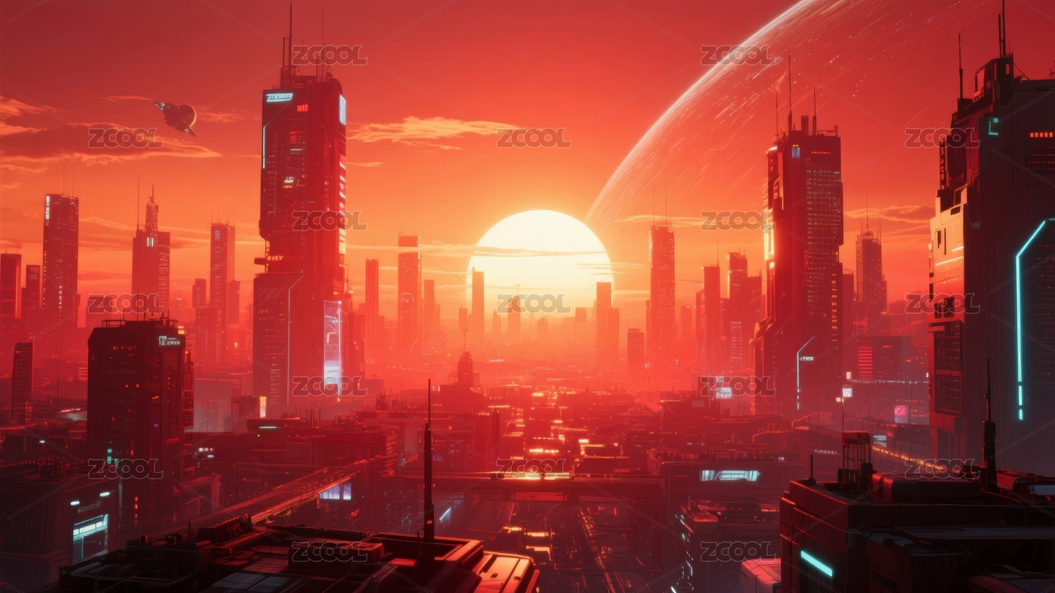 未来城市日落主题