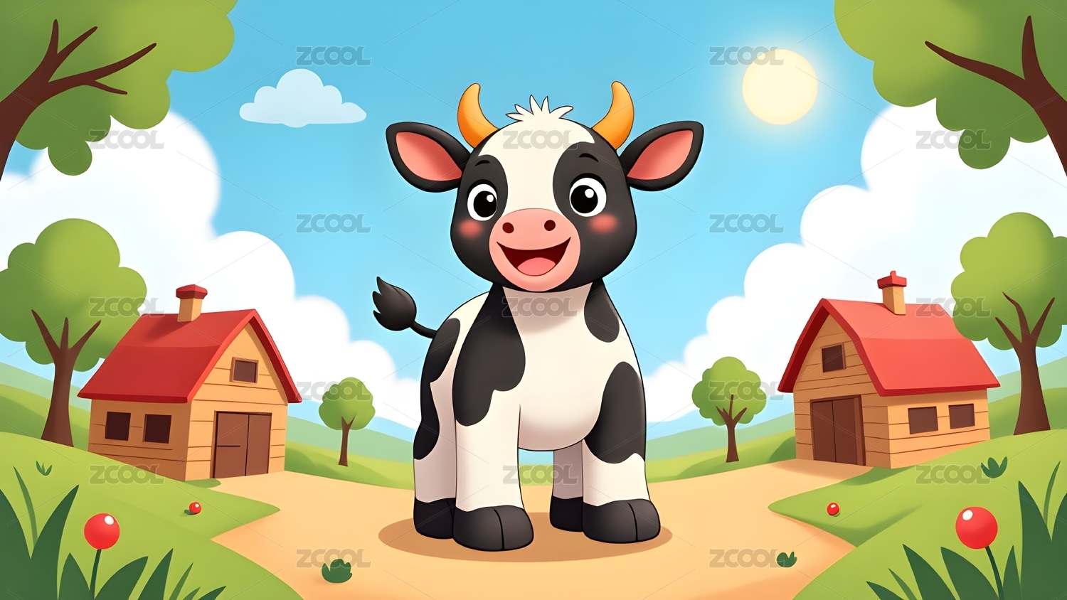 卡通奶牛田园风光