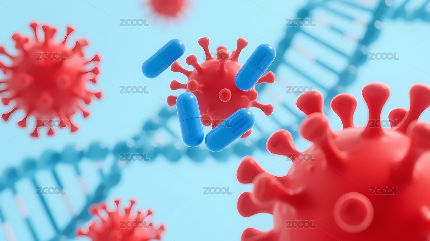 3d渲染的病毒细菌细胞背景,世界卫生日医