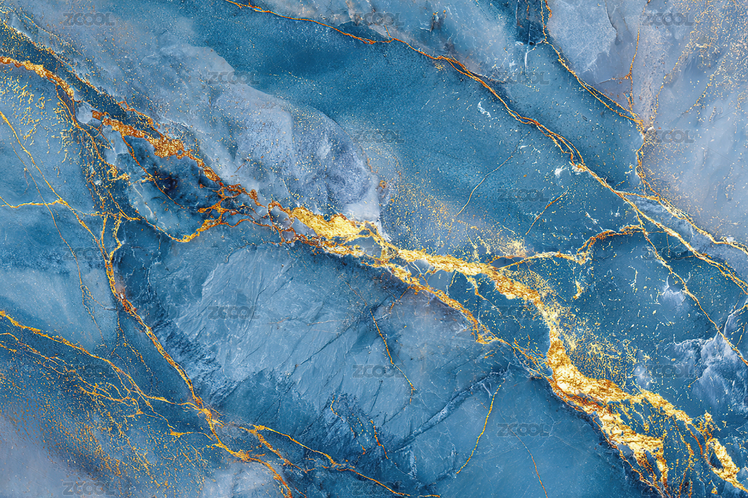 蓝色金箔大理石纹理背景