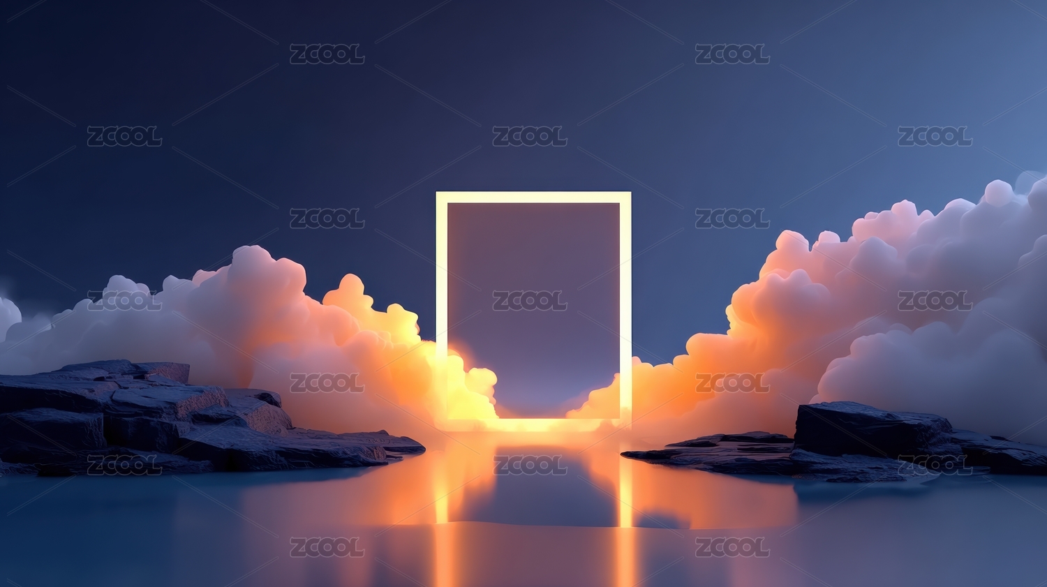 科技,背景,几何体,边框,体积光,发光,门框,蓝色,天空,水