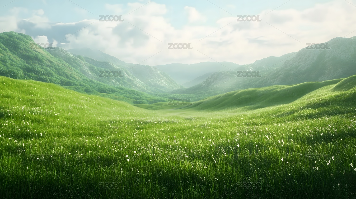 景色,宁静,祥和,清新,草原,远景,唯美,梦幻,绿草地, 青草