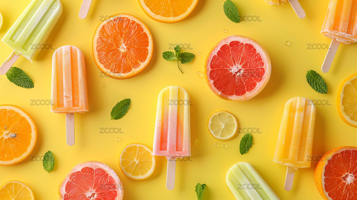 水果冰棒柠檬顶视图夏天冷饮健康水果插图