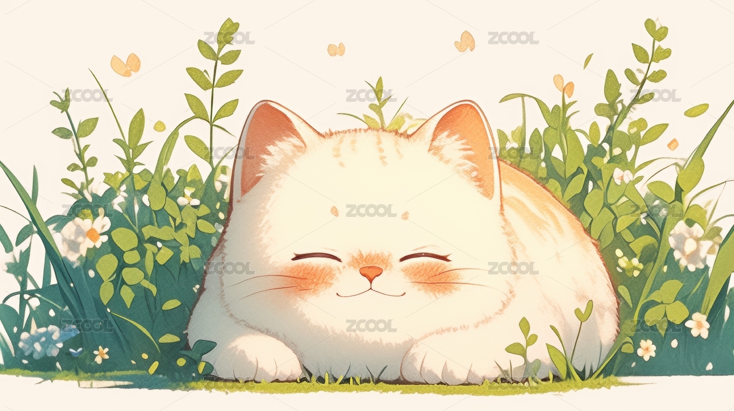 在草丛中的猫咪插画